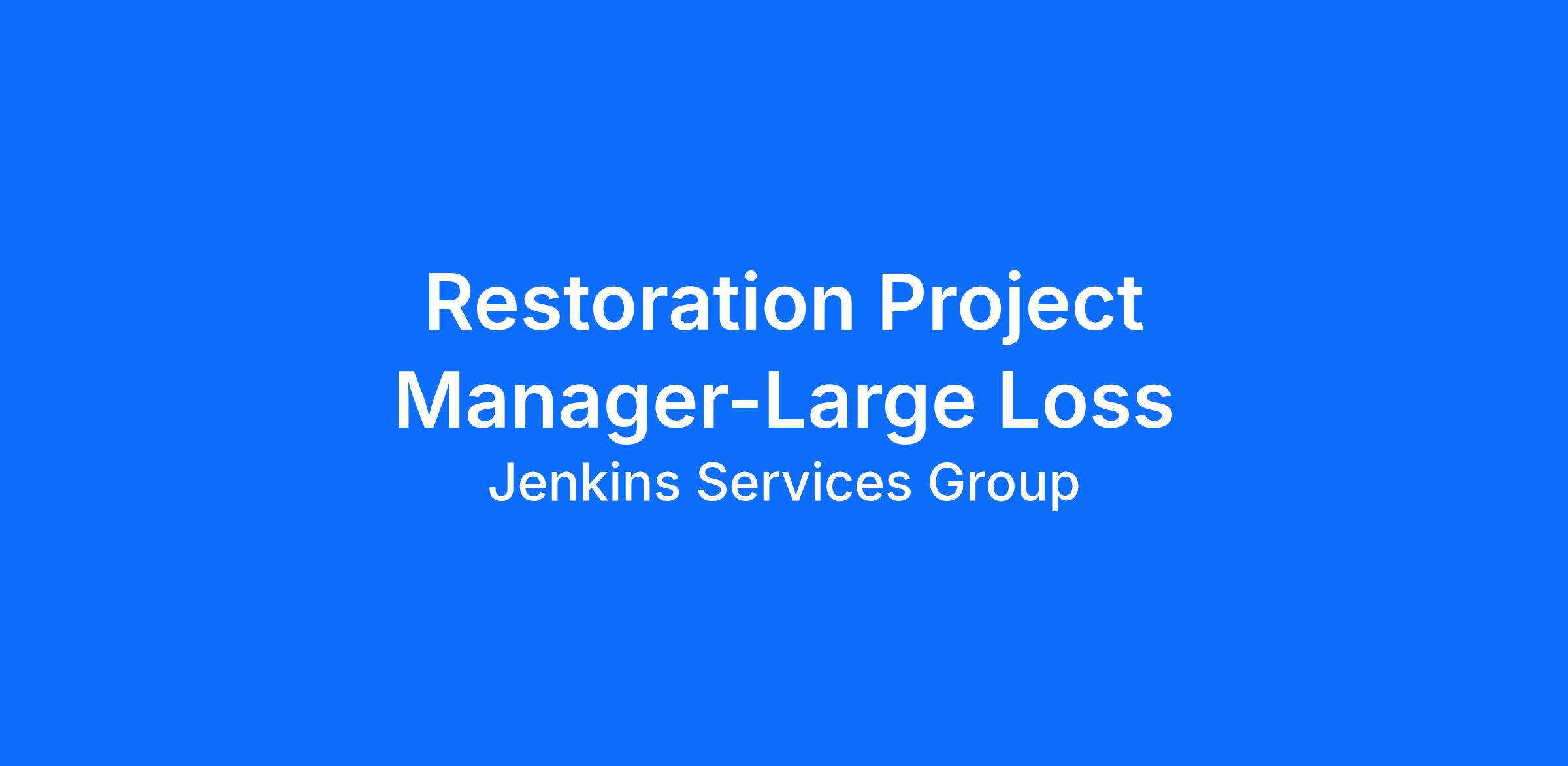 Jenkins Restorations upholds a vision to be the restoration firm of choice in existing and future markets while upholding Biblical values. The Large Loss Restoration Project Manager reports to the General Manager with accountability for providing excellent service for those who have been victims of disaster and for restoring property and lives with a servant’s heart. The Large Loss Restoration Project Manager is primarily responsible for managing large and/or complex construction jobs. This person manages deadlines, progress, and quality on multiple projects simultaneously. They should embody Jenkins Restorations’ core values, including, Can-do Attitude, Excellent Execution, Do the Right Thing, Actions of a Servant, and Responsible Stewardship (C.E.D.A.R).