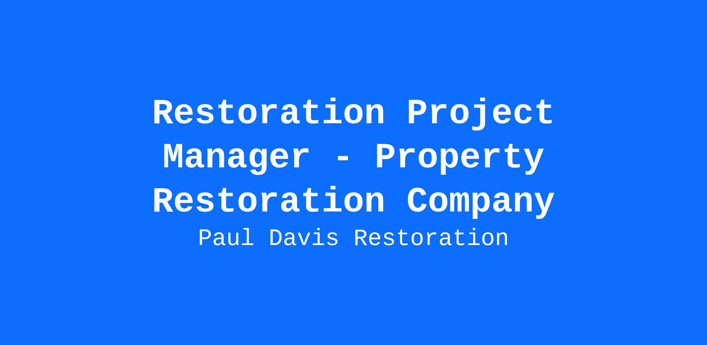Restoration Project Manager - Property Restoration Company