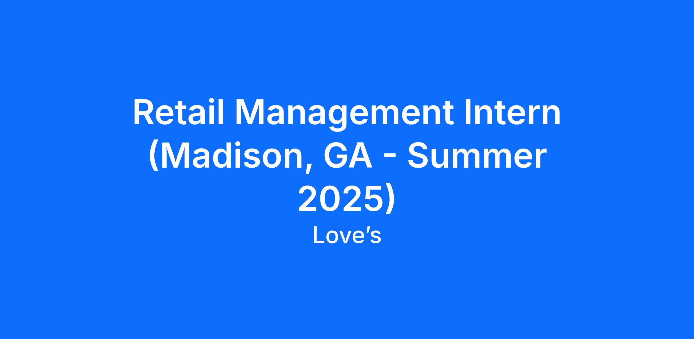Benefits: Competitive Wage * Monday through Friday Schedule * Fuel Your Growth with Love's * Career Development * Company Paid Travel * Real World Application of Skills * Mentorship Opportunity * Learn from Industry Professionals * Leadership Development * Opportunity for Full-Time Employment * Boost Your Resume *