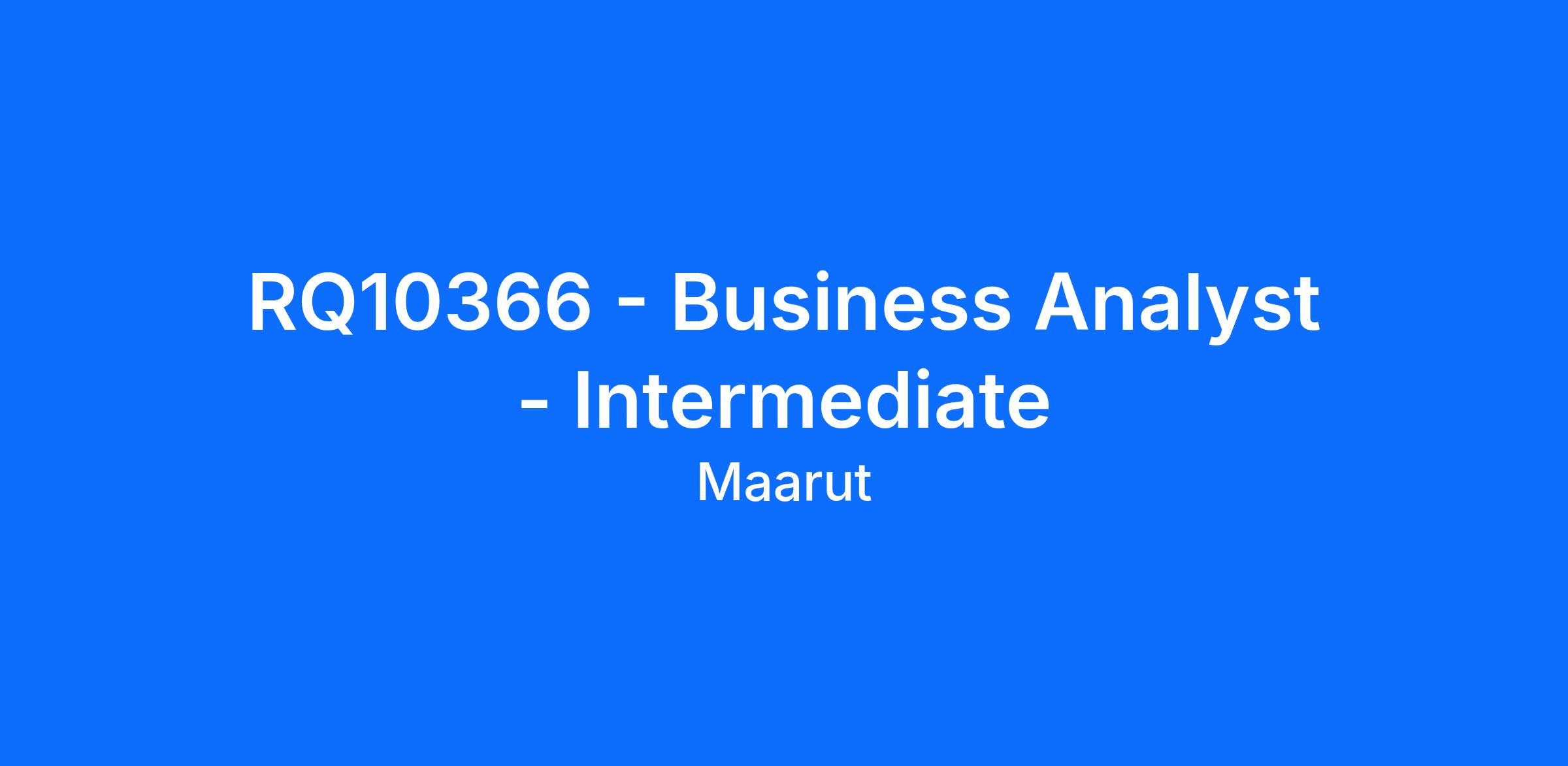 <\/html>"}}],"isMobile":false,"iframe":"true","jobType":"Contract","applyName":"Apply Now","zsoid":"653862245","FontFamily":"PuviRegular","jobOtherDetails":[{"fieldLabel":"Term","uitype":1,"value":"229 days"},{"fieldLabel":"Assigned Recruiter(s)","uitype":80,"value":"Margret Tinitha"},{"fieldLabel":"Job Opening ID","uitype":111,"value":"10285"},{"fieldLabel":"Industry","uitype":2,"value":"Technology"},{"fieldLabel":"Number of Positions","uitype":32,"value":"1"},{"fieldLabel":"Work Experience","uitype":2,"value":"7\-10 Years"},{"fieldLabel":"City","uitype":1,"value":"Toronto"},{"fieldLabel":"State\/Province","uitype":1,"value":"Ontario"},{"fieldLabel":"Zip\/Postal Code","uitype":1,"value":"M4C"}],"headerName":"RQ10366 \- Business Analyst \- Intermediate","widgetId":"383123000000072311","isJobBoard":"false","userId":"383123000000184003","attachArr":[{"fileName":"RQ10366 \- Business Analyst \- Intermediate.docx","linkDocs":0,"isView":"false","fileDigest":"6fbn5breIzBNwVUMiggIrvCjZJapZMlQfKs0cRjTG.oxMRg6XEThv5lCXNyVX5as7NjckCVuqqZgnO8auPH8lg\-\-","fileType":"docx"}],"customTemplate":"4","isCandidateLoginEnabled":true,"jobId":"383123000204220033","FontSize":"15","googleIndexUrl":"https:\/\/maarutinc.zohorecruit.com\/recruit\/ViewJob.na?digest=6fbn5breIzBNwVUMiggIrn66HphjTaWVKbaF2zTlqj8\-&embedsource=Google","location":"Toronto","embedsource":"CareerSite","indeedCallBackUrl":"https:\/\/recruit.zoho.com\/recruit\/JBApplyAuth.do"}
