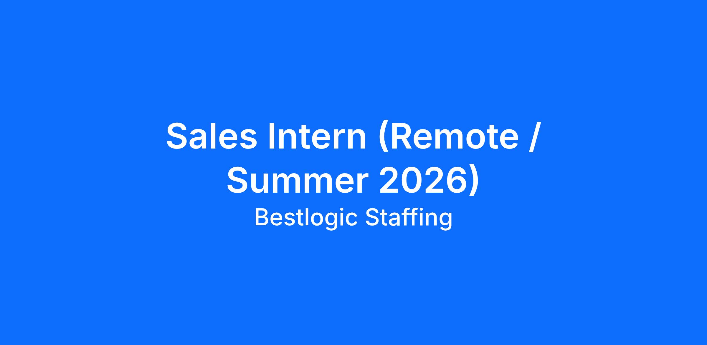 Sales Intern (Remote / Summer 2026)