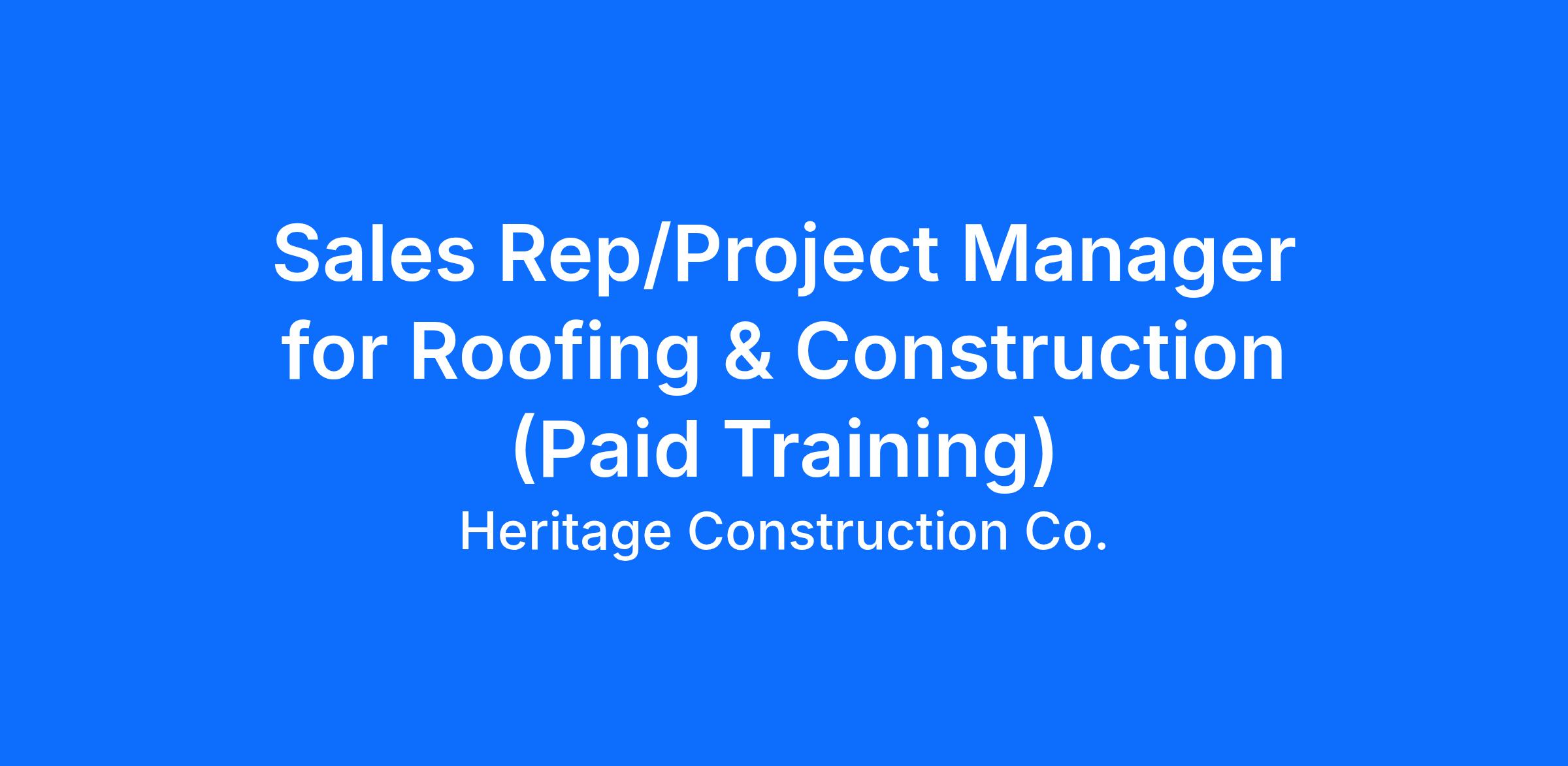 Tired of the desk? Driven by results? Heritage Roofing & Construction is hiring motivated, competitive self-starters who want a high-income career with no ceiling.