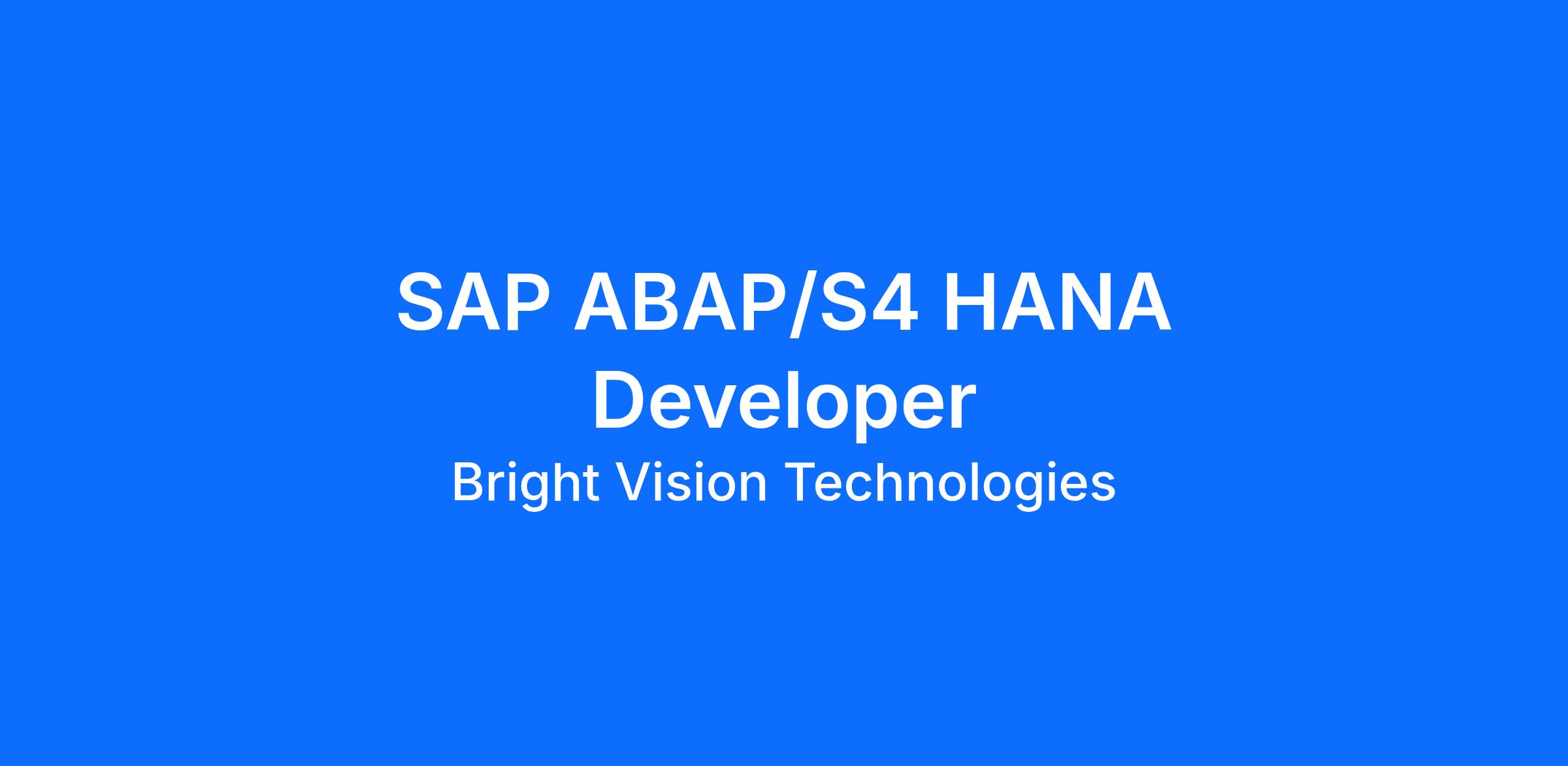 Bright Vision Technologies is a forward-thinking software development company dedicated to building innovative solutions that help businesses automate and optimize their operations.We leverage cutting-edge technologies to create scalable, secure, and user-friendly mobile applications. As we continue to grow, we’re looking for a skilled SAP ABAP Developer (S/4HANA) to join our dynamic team and contribute to our mission of transforming business processes through technology.This is a fantastic opportunity to join an established and well-respected organization offering tremendous career growth potential.We are looking for OPT/CPT/H4 EAD/TN/E3 or any other Non-immigrant visa people who are looking for an H1B sponsorship for the year 2027 quota.Company: Bright Vision Technologies ( www.bvteck.com )Job Title: SAP ABAP Developer (S/4HANA)Job Location: Dallas, TXOnsite/Hybrid: RemoteFULL-TIME ROLE WITH BRIGHT VISIONJob Description:Environment: