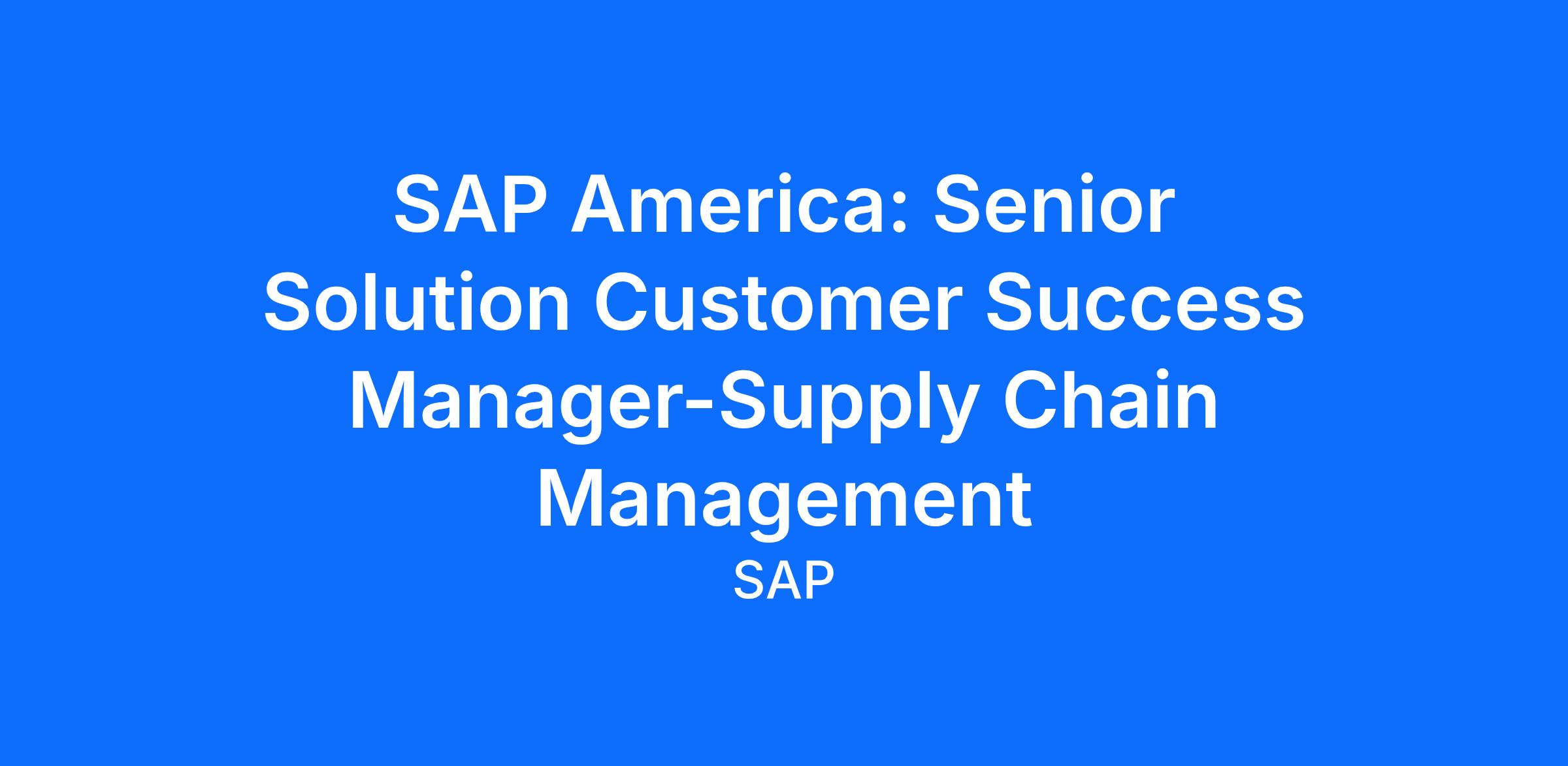 Job Title: Solution Customer Success Manager-Supply Chain Management