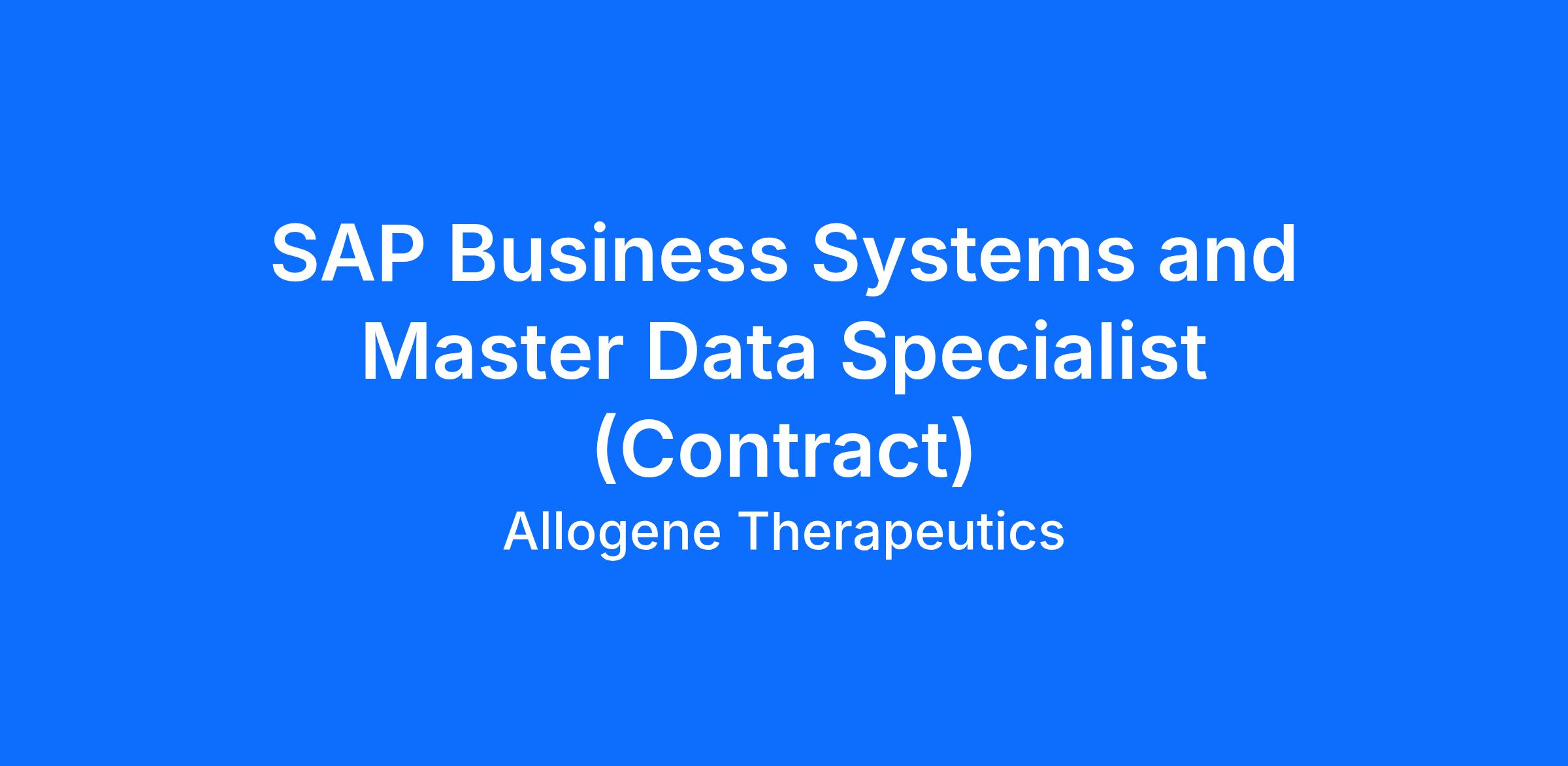 Allogene is seeking an experienced SAP Business Systems and Master Data Specialist to support Supply Chain, Manufacturing, Quality, and Warehouse operations, as well as related Master Data. Reporting to the Head of Supply Chain, this role is critical to supporting end users, ensuring SAP master data integrity, improving reporting, and driving continuous improvement initiatives. The role will be a part-time, contract position for a period of 6 months with possible extension.