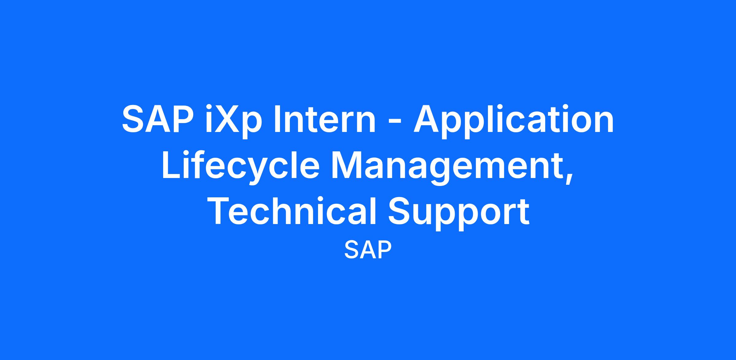 Position title: SAP iXp Intern - Application Lifecycle Management, Technical Support