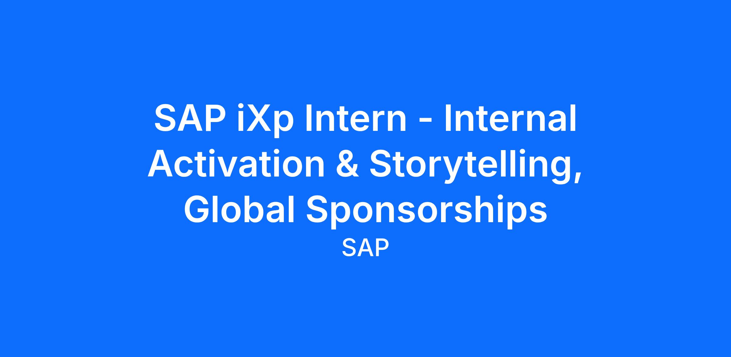 Position title: SAP iXp Intern - Internal Activation & Storytelling, Global Sponsorships