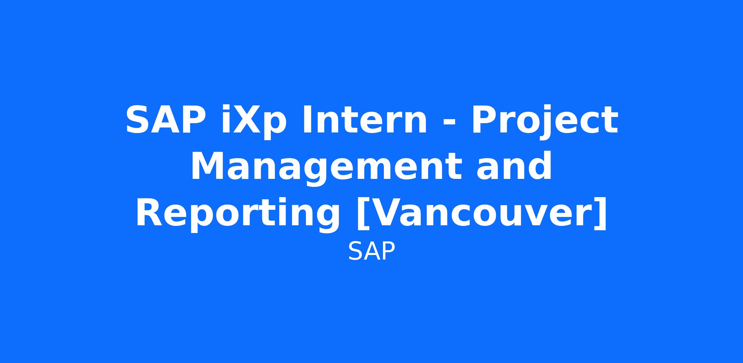 Position Title: SAP iXp Intern - Project Management and Reporting