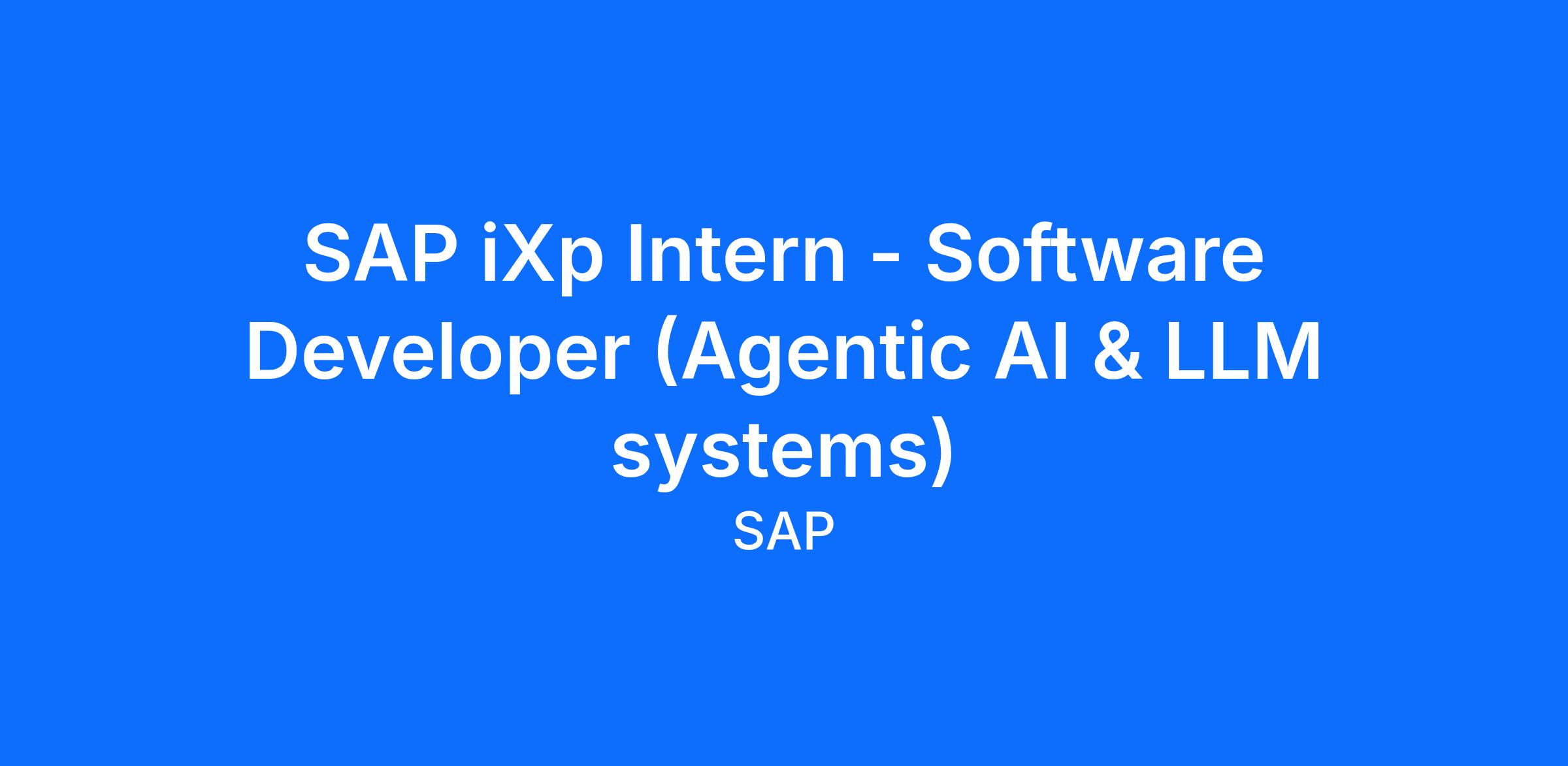 Position title: SAP iXp Intern - Software Developer (Agentic AI & LLM systems)