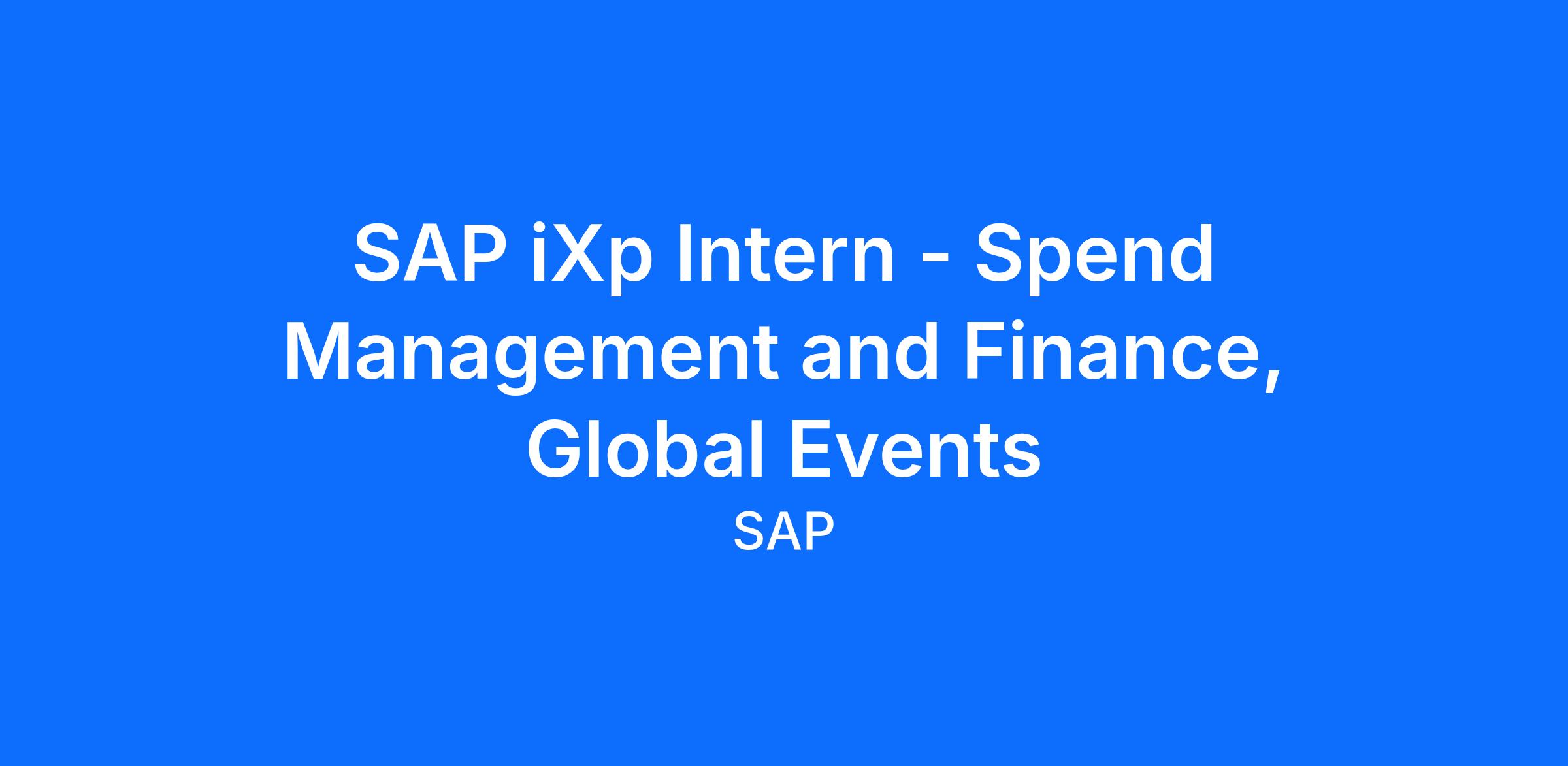Position title: SAP iXp Intern - Spend Management and Finance, Global Events