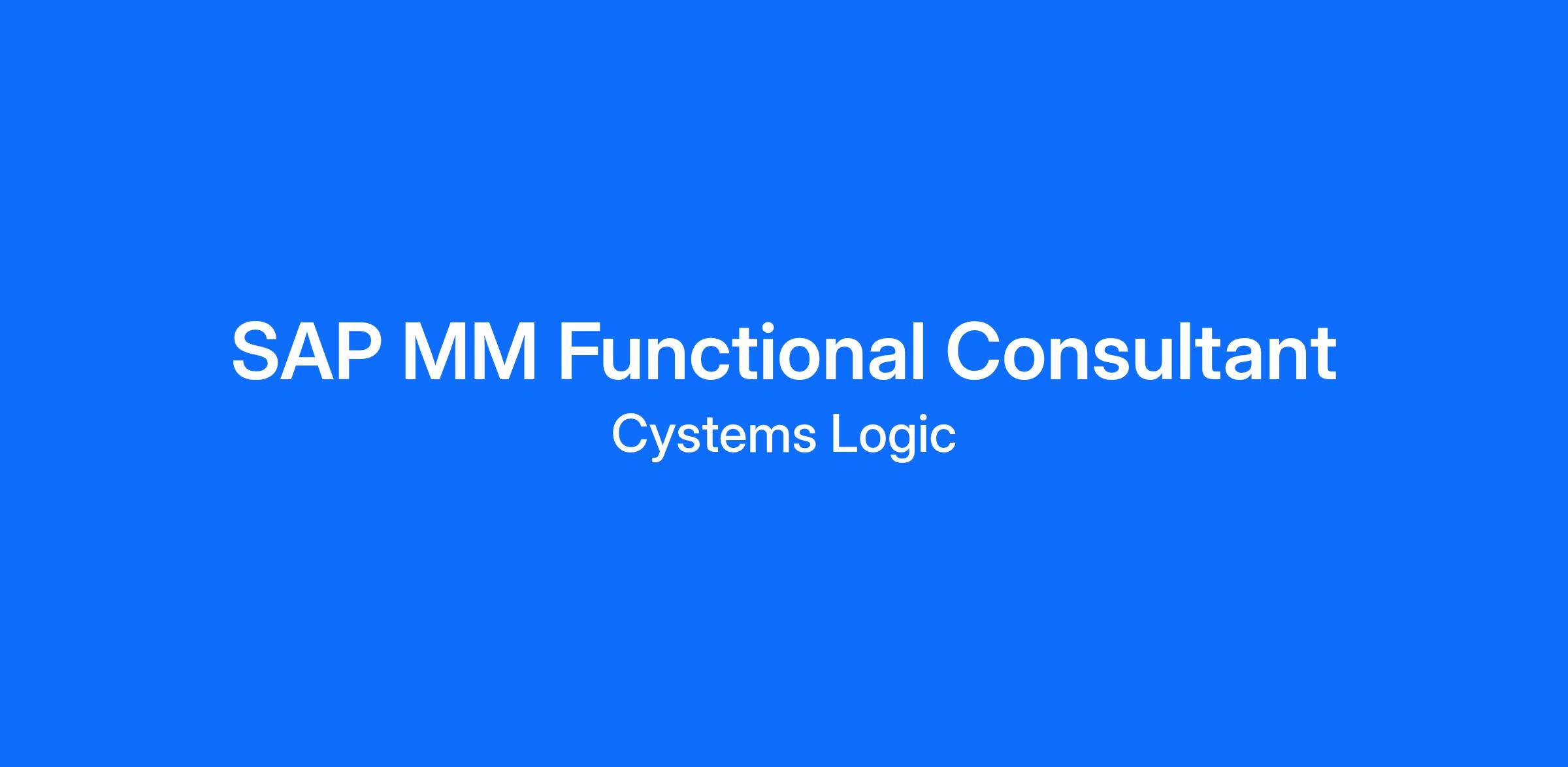 Job Title: SAP MM Functional Consultant