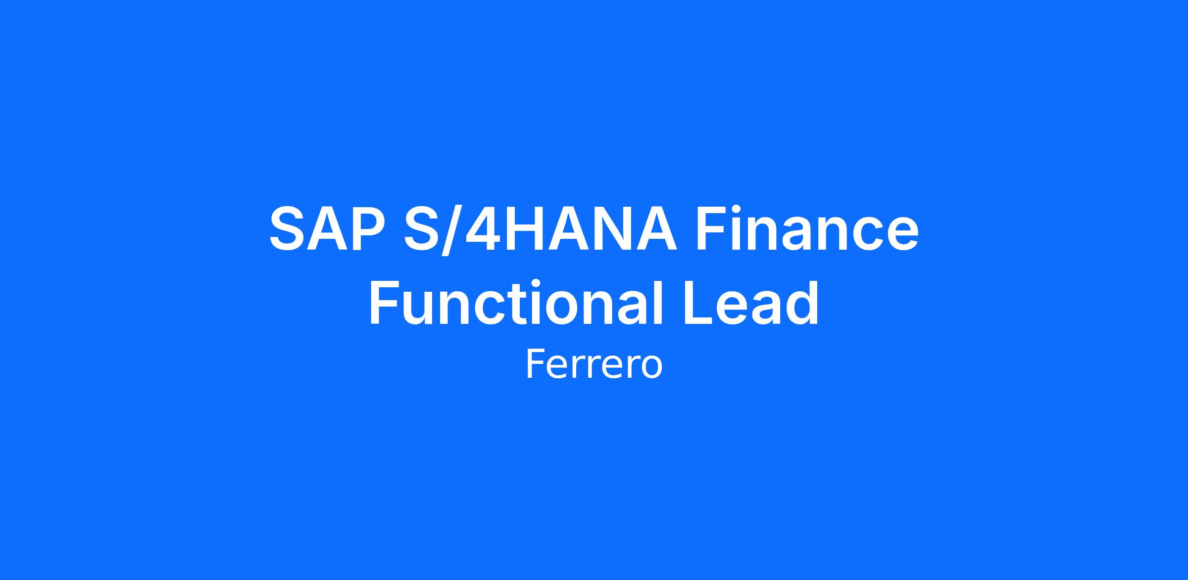 We have a current opening for an SAP S/4HANA Finance Functional Lead and are actively reviewing applications.