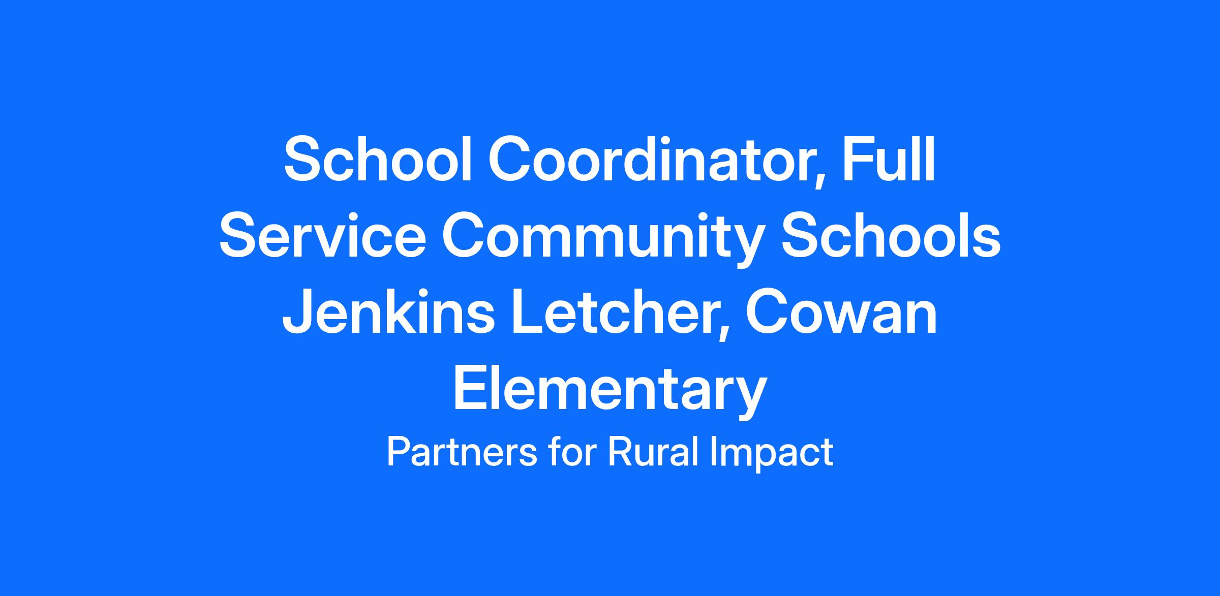 This is a key full-time, grant-funded position for Partners for Rural Impact and the Full-Service Community Schools (FSCS) Initiative. Reporting to the FSCS Project Director, the School Coordinator will work closely with partners and school systems to ensure stakeholders are adequately informed of FSCS activities and services, watching for duplication of services. The School Coordinator will engage in joint planning that entails a full-time commitment and ensures the program is supporting the four FSCS pillars: 1) holistic integrated student supports; 2) expanded, enriched learning time and opportunities from cradle to career; 3) family and community engagement; 4) collaborative leadership and practices. The School Coordinator is charged with coordinating academic, social, and health services through partnerships between a) public elementary and secondary schools; b) the schools’ local educational agencies (LEAs); and c) community-based organizations, nonprofit organizations, and other public or private entities. The position leads and operates with the goal that All Rural Students Succeed.