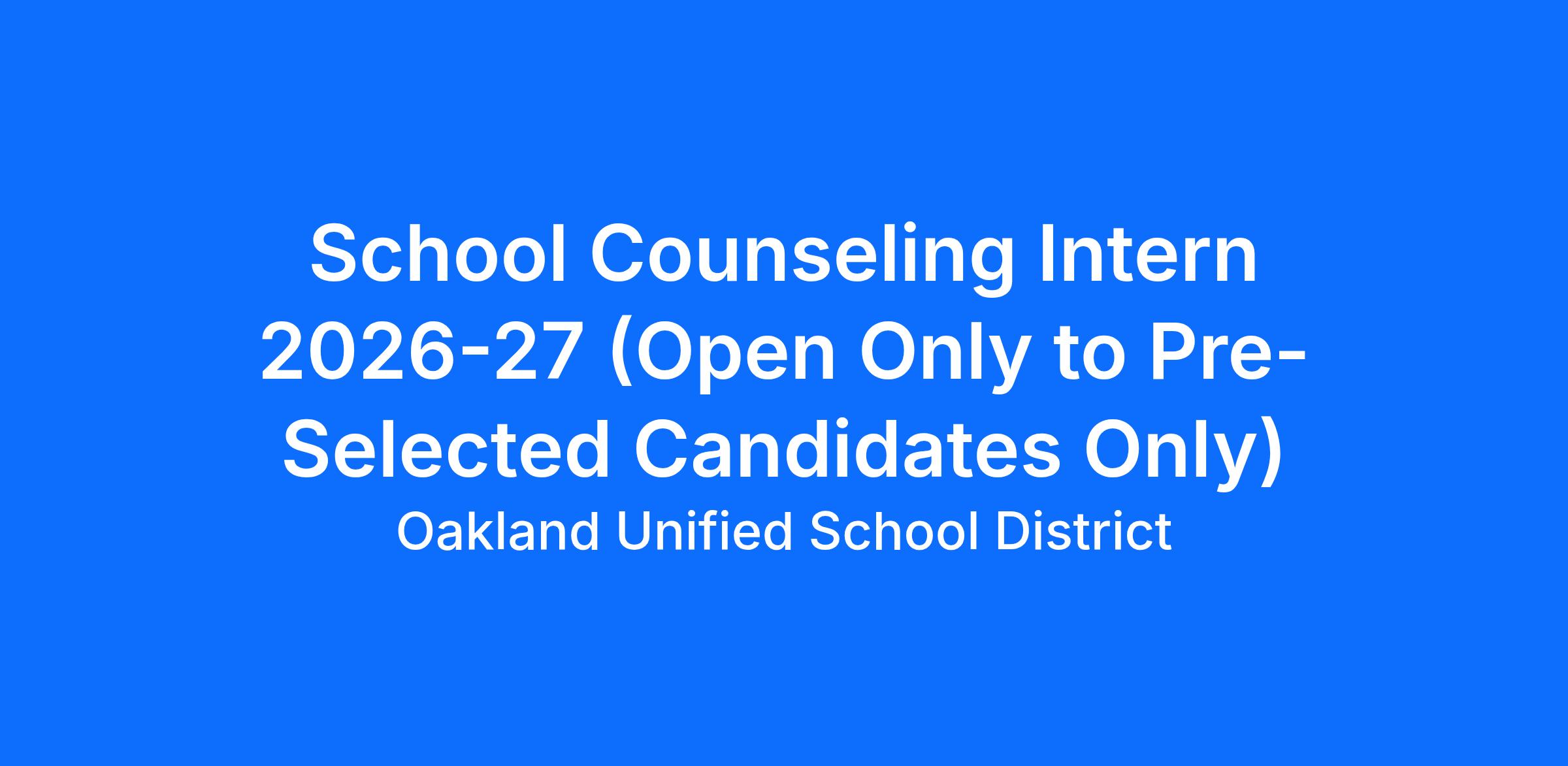 Please be aware: This posting is only accepting information from candidates who are already selected for a specific and limited internship partnership between OUSD and a Counselor Supervisor We are sorry but outside applications to this posting will not receive a response.