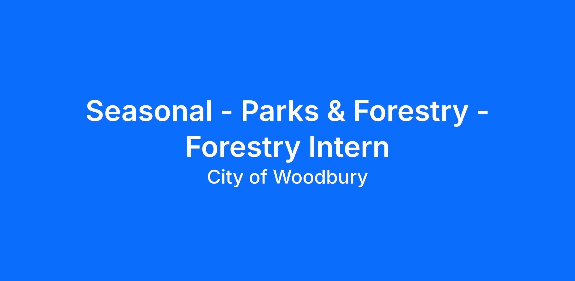 The primary purpose of this position is to provide experience to individuals enrolled in a forestry related education/training program. This position will mainly preform forestry duties with the City of Woodbury Forestry Crew along with other possible routine Park Maintenance tasks if needed. This is a 40 hour per week position.