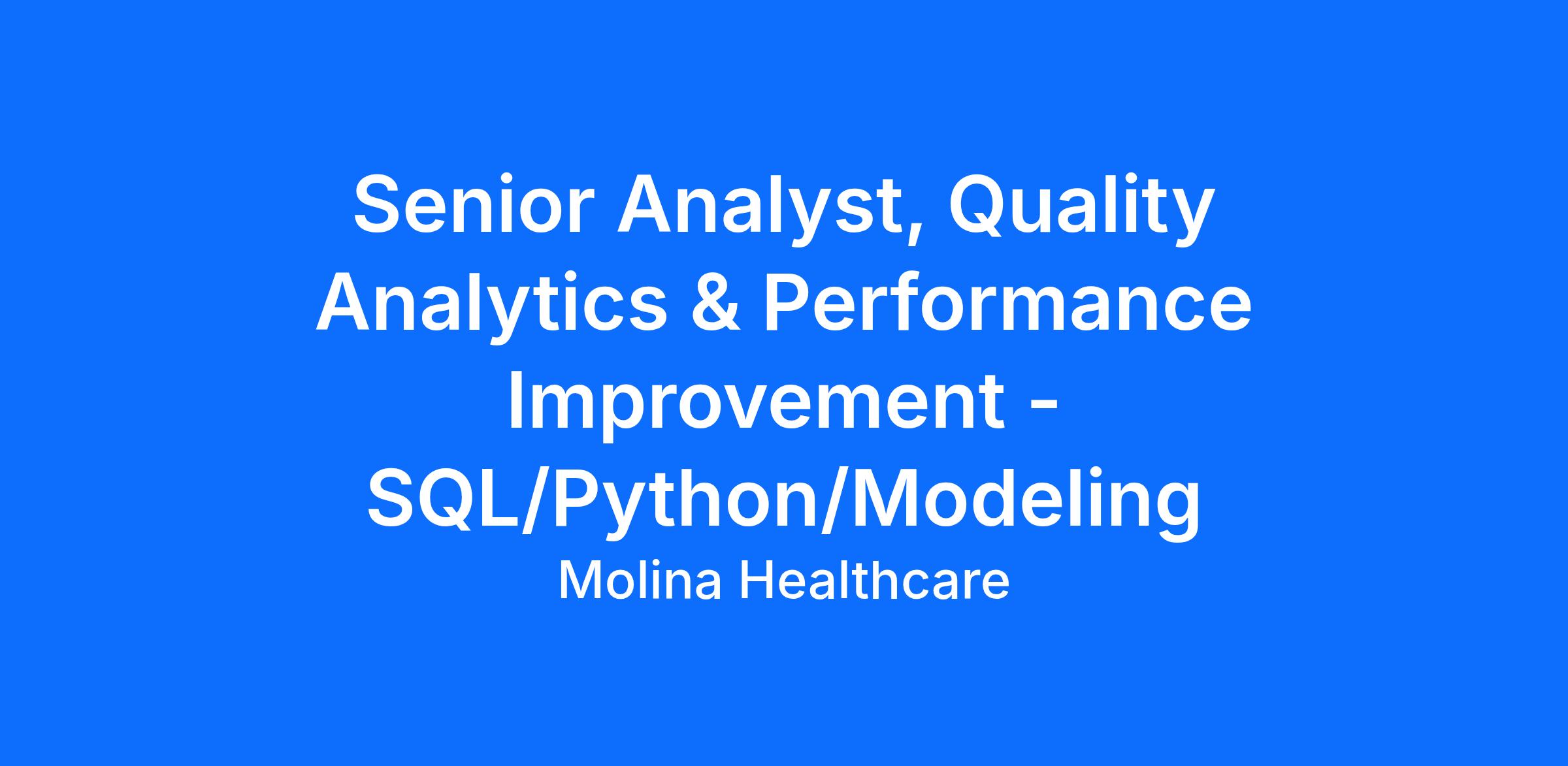 The Senior Analyst, Clinical Data Acquisition Molina's Quality team. Responsible for data analysis for prospective and retrospective Quality, Risk Adjustment and RADV programs. Design and develop strategic data solutions to improve the data quality and utilization of provider and historical data to enhance performance of Medical Record Review. Designs and develops reporting solutions to assist HEDIS audit, rate tracking, and Identifying targeted Interventions and tracking outcome. Design and develop reporting to drive initiatives prompting provider engagement and reducing manual interventions across the Clinical Data Acquisition team. Assist with research, development, and completion of special performance improvement projects.