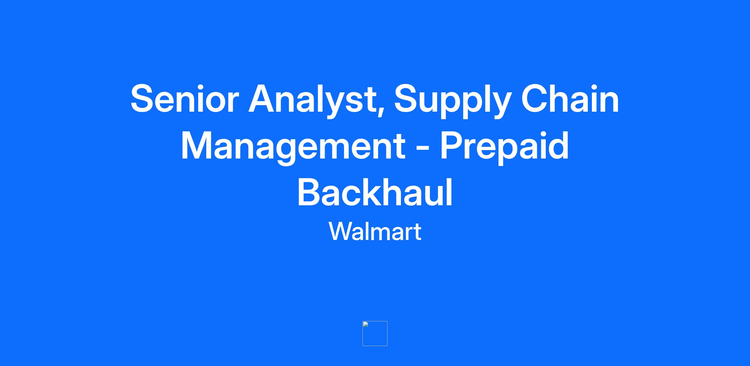 As a Senior Analyst for Supply Chain Management - Prepaid Backhaul, you will be responsible for owning national accounts with suppliers that ship freight to Walmart by managing data analytics, metrics, and overseeing levels of service from a transportation perspective.