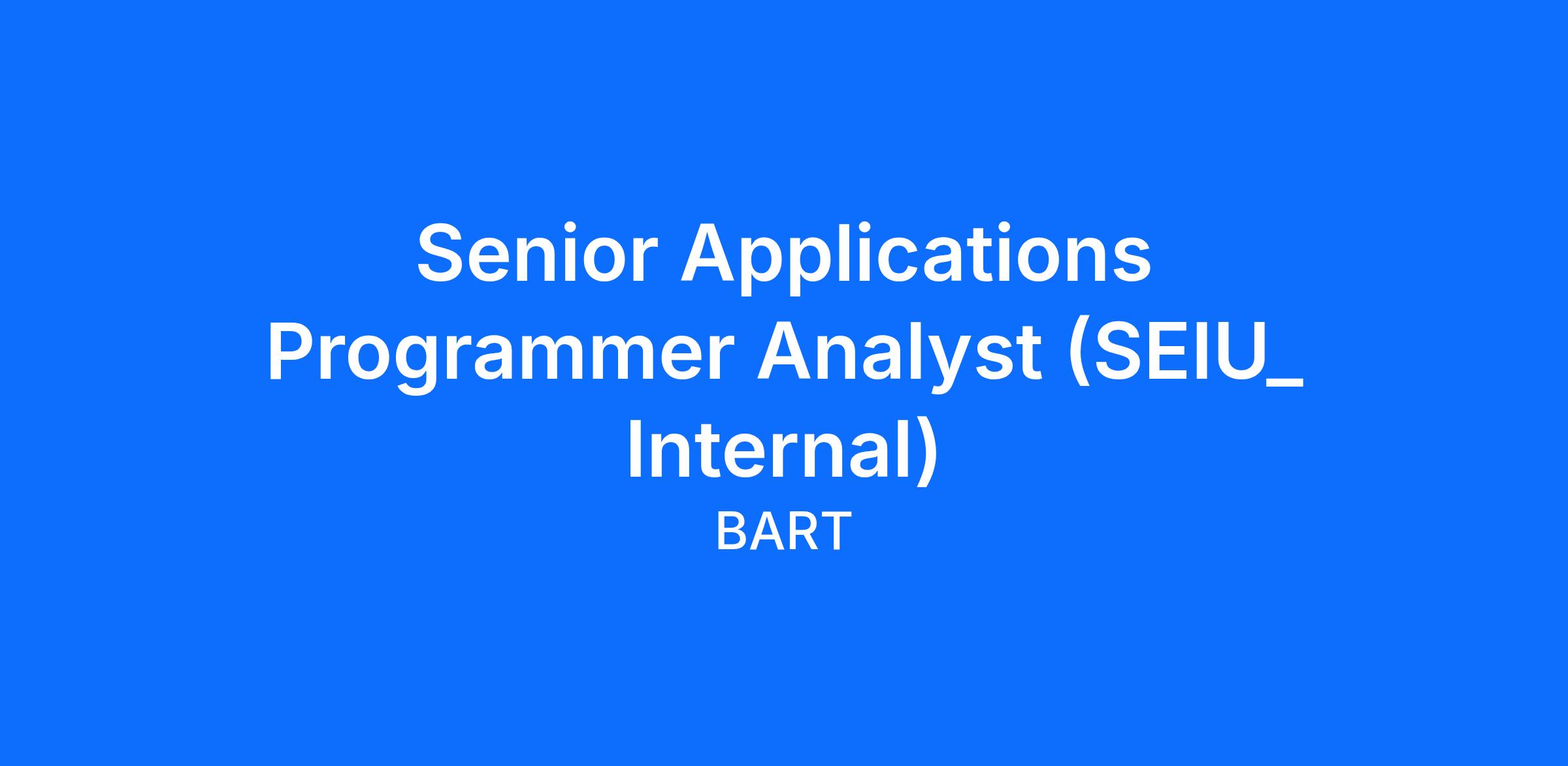 Bay Area Rapid Transit (BART) is seeking a highly motivated and skilled Senior Applications Programmer Analyst to join our dynamic and dedicated Office of the CIO. In this exciting role, you will provide enterprise application support across key platforms, including FusionLive Document Management System, DocuSign, Microsoft applications, and ColdFusion—helping BART continue to deliver world-class transit service to the Bay Area.