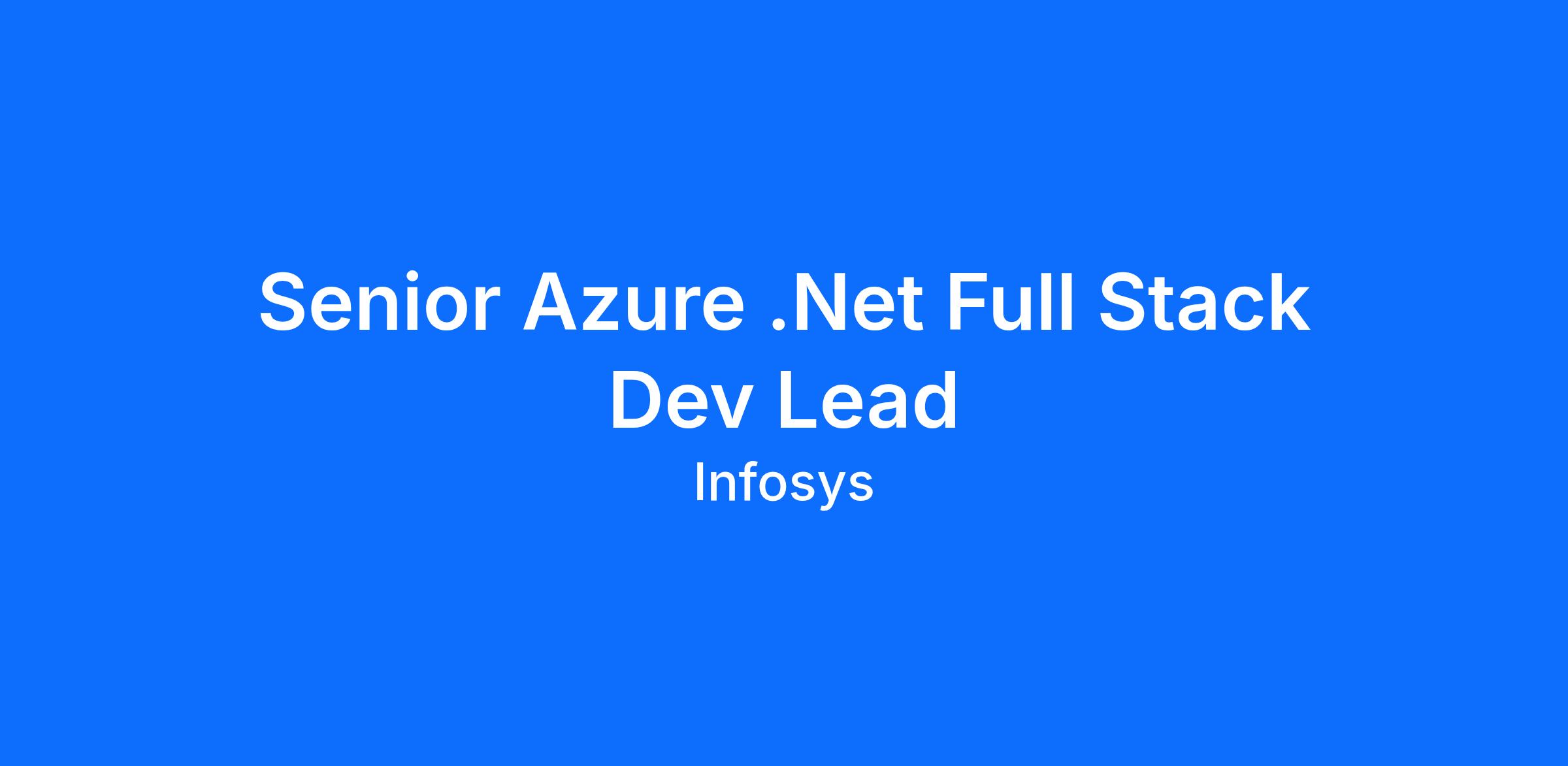 Infosys is seeking a Senior .net Azure full stack dev lead who will play a key role for design, development, and end to end support for a development enhancement program with for one of the key clients.