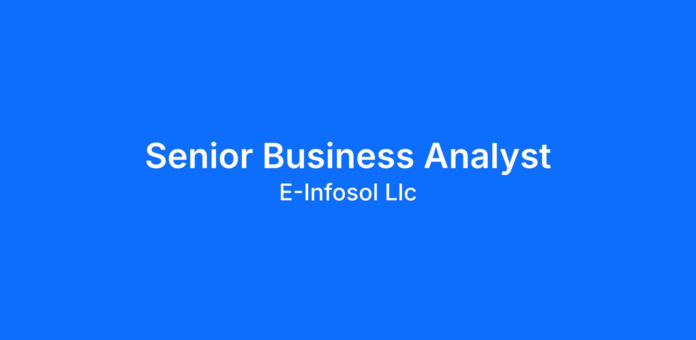 E-INFOSOL LLC is seeking a highly motivated Senior Business Analyst to be a full-time employee in Washington, DC to join our innovative and customer solutions focused team.