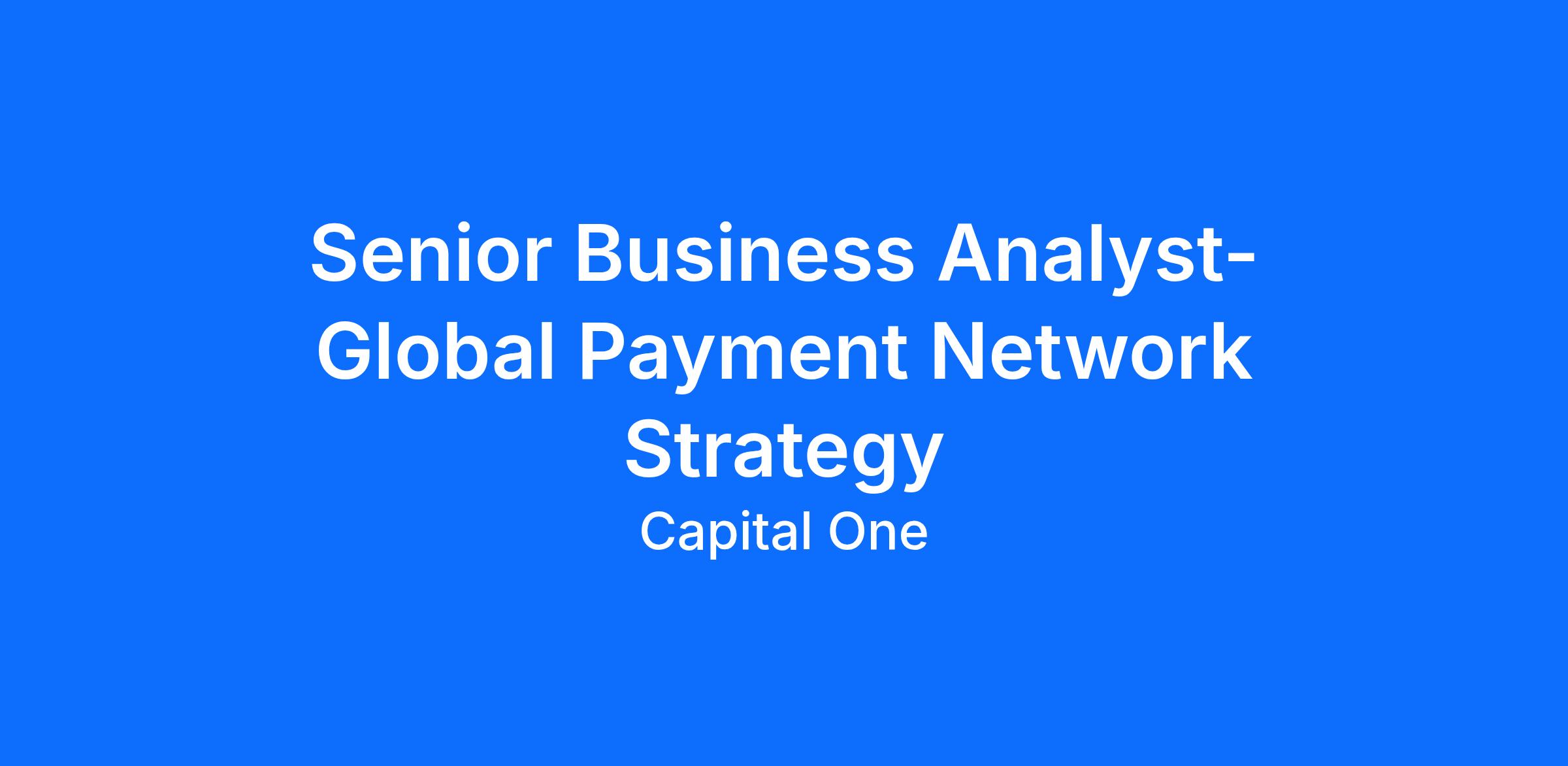 Summary: As a Senior Business Analyst at Capital One, you will apply your strategic and analytical skills to major company challenges. You will team with world-class professionals to develop and test strategies that ultimately impact the bottom line. And you will do it all in a collaborative environment that values your insight, encourages you to take on new responsibility, promotes continuous learning, and rewards innovation.
