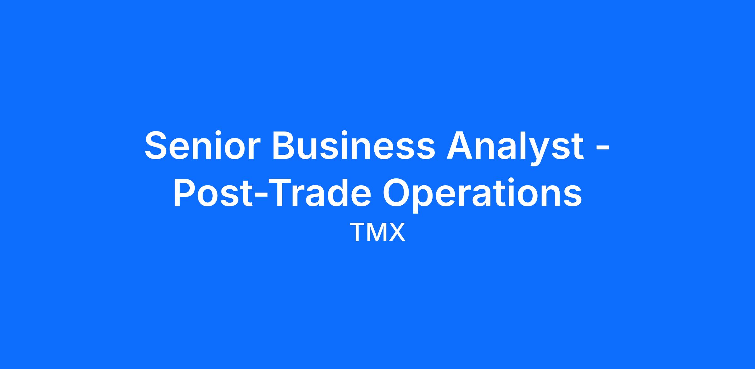 Senior Business Analyst - Post-Trade Operations