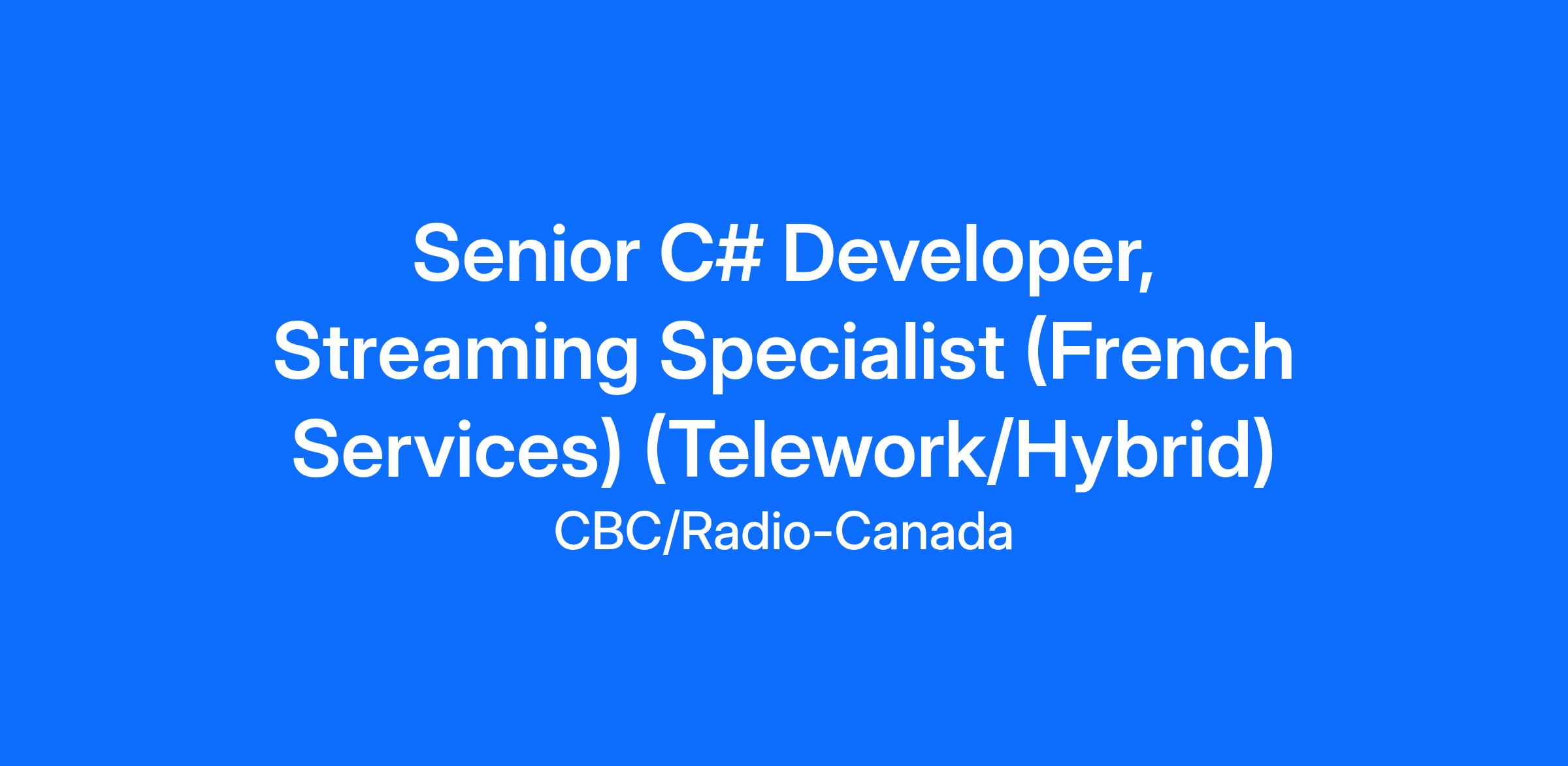Senior C# Developer, Streaming Specialist (French Services) (Telework/Hybrid)Status of Employment: