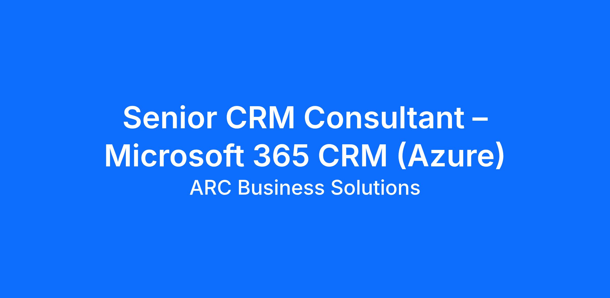 ROLE: Senior CRM Consultant – Microsoft 365 CRM (Azure)