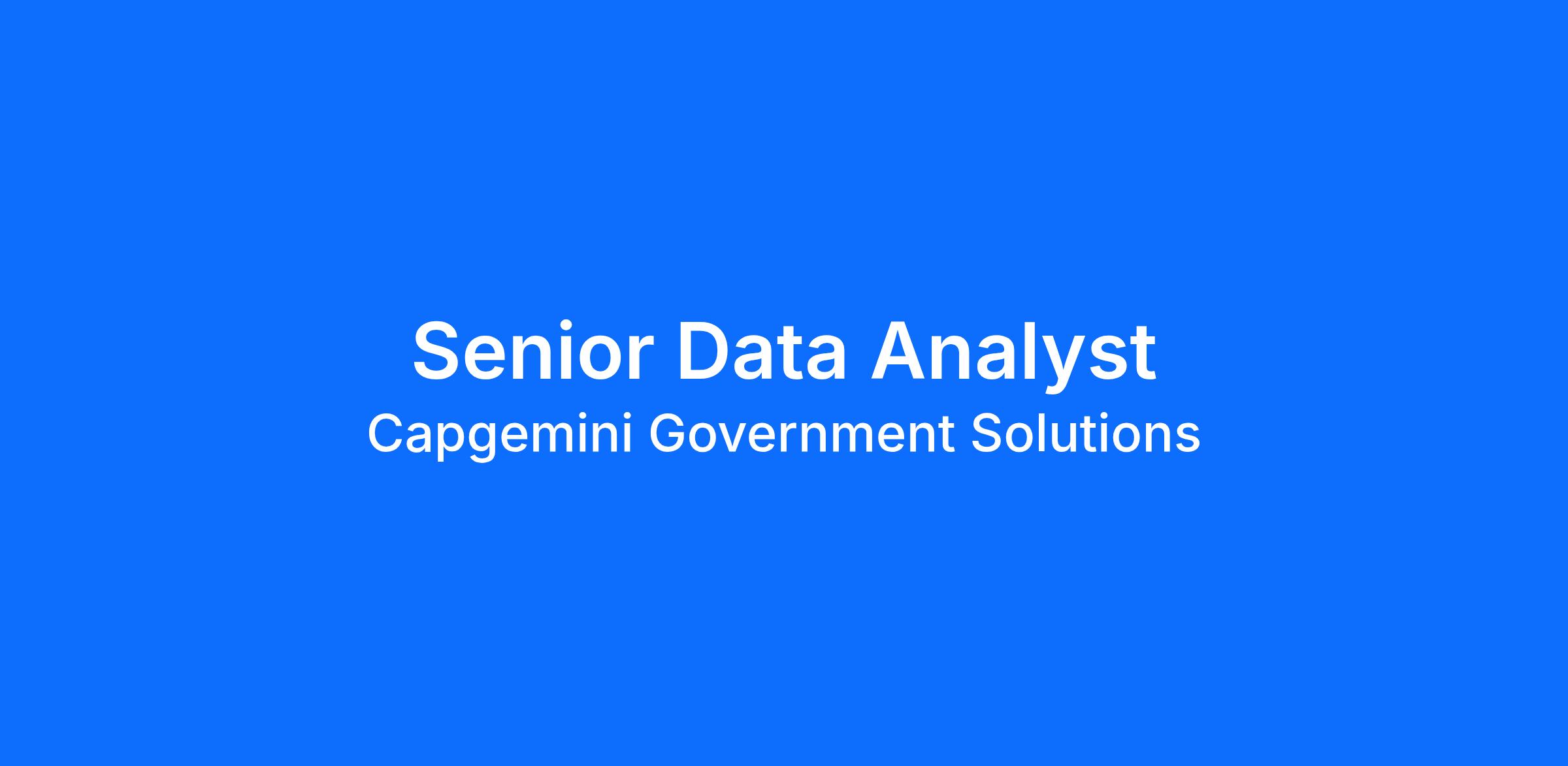 Capgemini Government Solutions (CGS) LLC is seeking highly motivated Senior Data Analyst Consultant to join our team to support our government clients. The successful applicant will have the opportunity to create analyses, reports, and visualizations for our clients. The candidate will join our Data and Artificial Intelligence practice in the DC Metro Area.