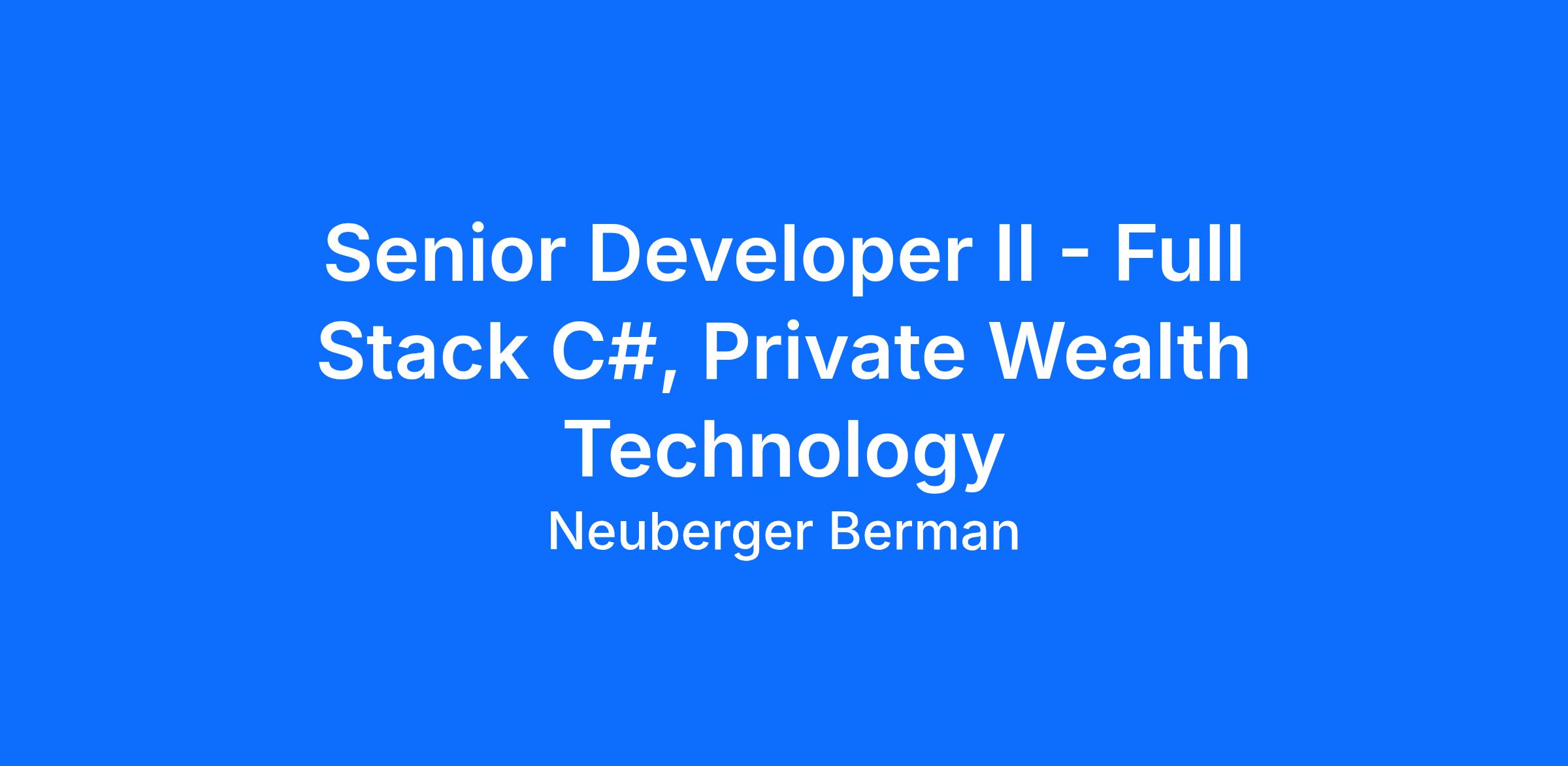 The Private Wealth Technology team supports Neuberger’s Private Wealth business, with a focus on exceptional advisor and client experiences. We’re seeking a Senior Full-Stack Developer (.NET/C#) to design, build, and operate scalable, high-performance applications and integrations across multiple wealth-management data domains.