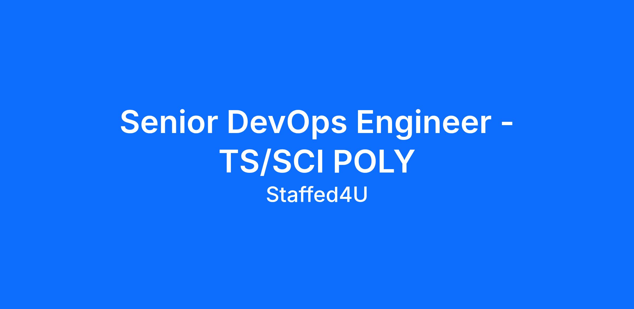 This position offers the opportunity to work on high-impact, technically challenging systems in a secure environment while leveraging modern DevOps tooling and cloud-native technologies. The role is well-suited for a senior-level engineer who enjoys ownership, problem-solving, and driving automation at scale.