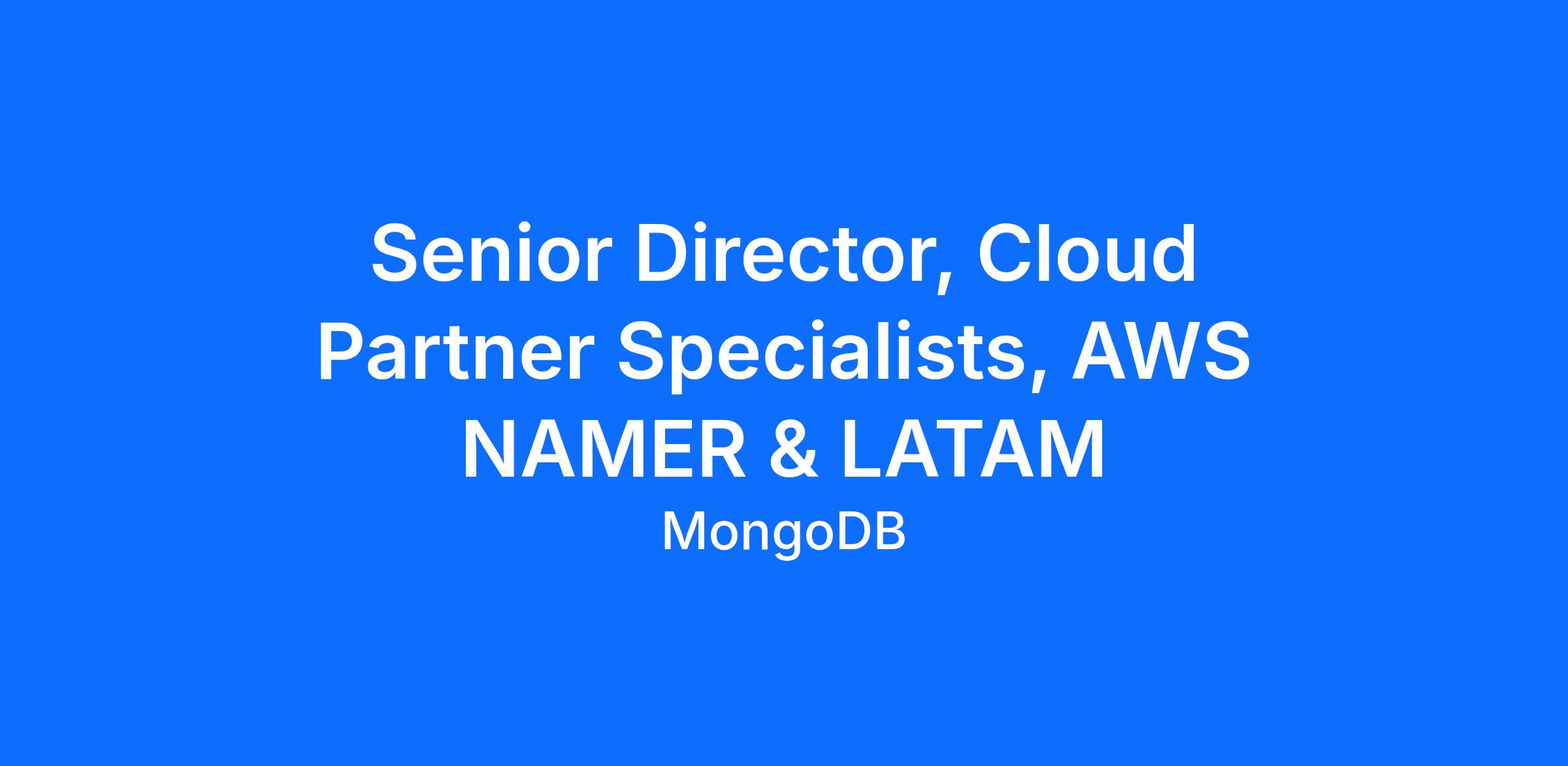 We are looking for an inspiring, results-oriented Senior Director, to manage the AWS Cloud Specialist team in NAMER and LATAM. This is a high impact and quota carrying role leading our strategic partnership with AWS. This individual must have credibility at the Executive level to build relationships with senior stakeholders at AWS and MongoDB.