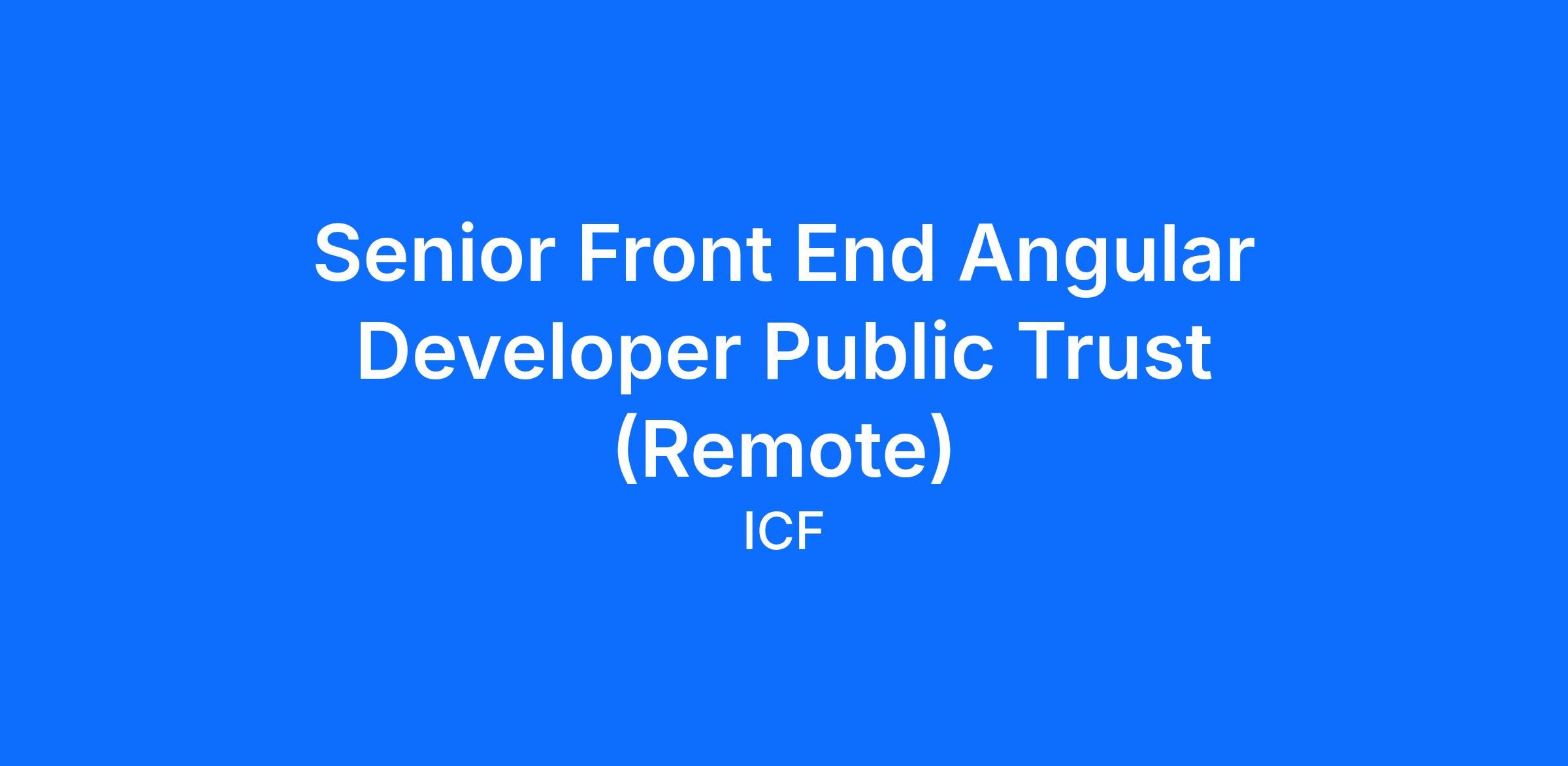 As a Senior Front End - Angular Developer at ICF you play the central role in driving innovation and using technology to drive connections through a multi-channel experience. If you have an incredible passion for innovative technology development and enjoy working with clients, ICF is the place for you. You should have experience with common development tools, techniques and numerous programming languages. All team members are very dynamic with experience delivering end-to-end solutions, quite often skilled in front-end and back-end technologies.