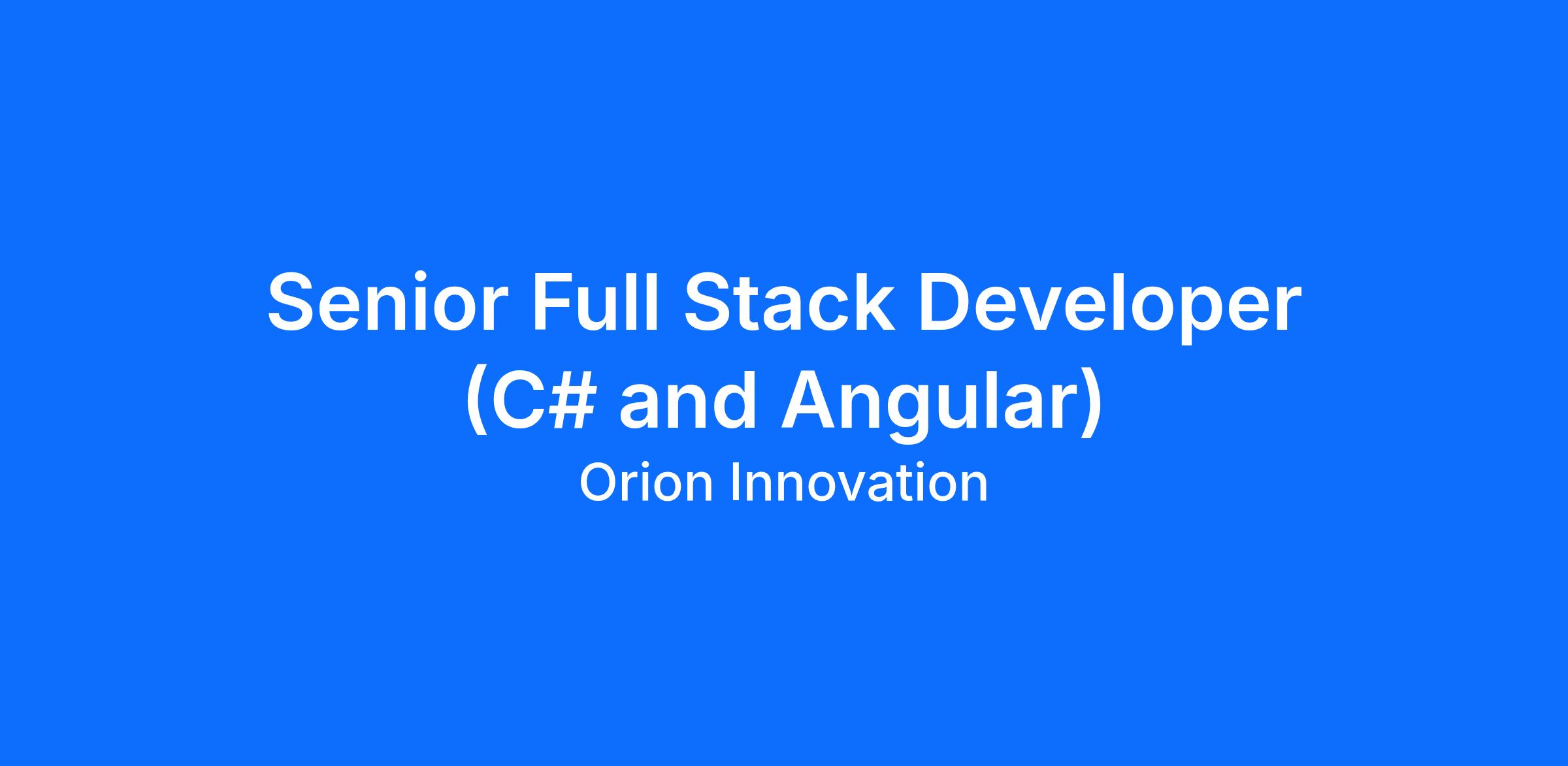 Role: Senior Full Stack Developer (C#, .NET & Angular)