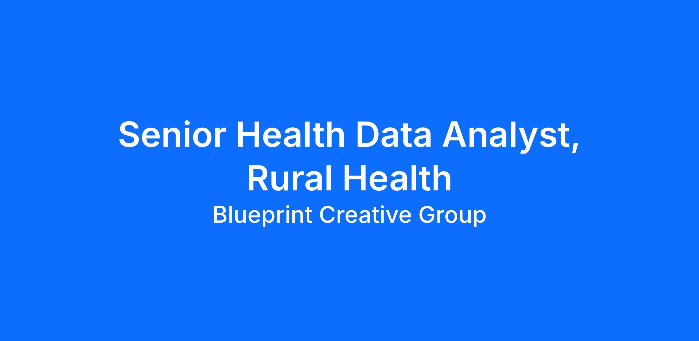 ROLE SUMMARYThe Senior Health Data Analyst builds the data layer that powers Blueprint's Rural Health Transformation Program (RHTP) engagements. This includes county and facility-level rural health supply and demand fact bases, customizable dashboards, gap analyses, and scheduled automated reporting. This role layers healthcare-specific data expertise on top of our existing dashboard, automation, and AI capability. The analyst works closely with engagement, training, and PMO teams to ensure data drives decisions in the field.KEY RESPONSIBILITIES