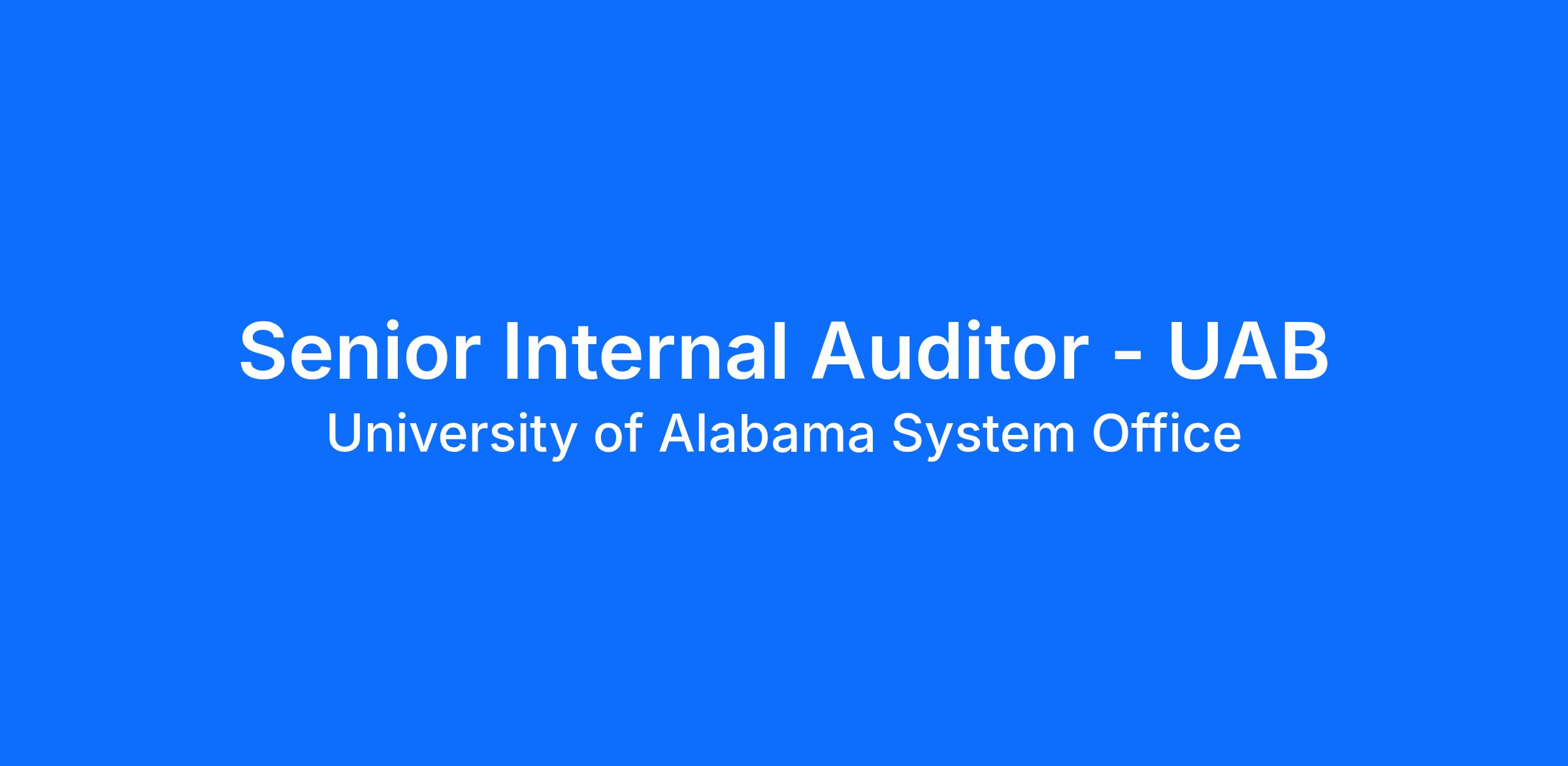 The University of Alabama System is receiving applications for a position of Senior Internal Auditor in the Office of Internal Audit. The primary office location is The University of Alabama at Birmingham. This position comes with opportunity for advancement.