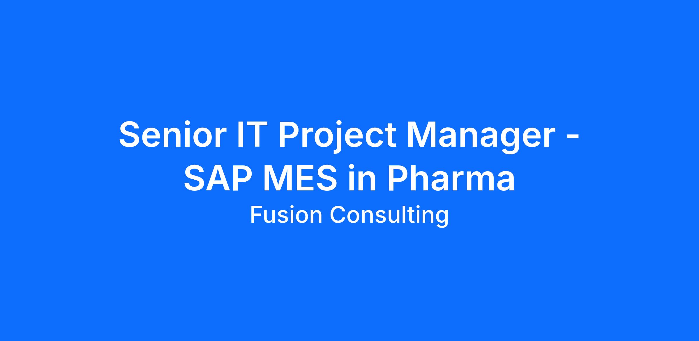 Senior IT Project Manager - SAP MES in Pharma