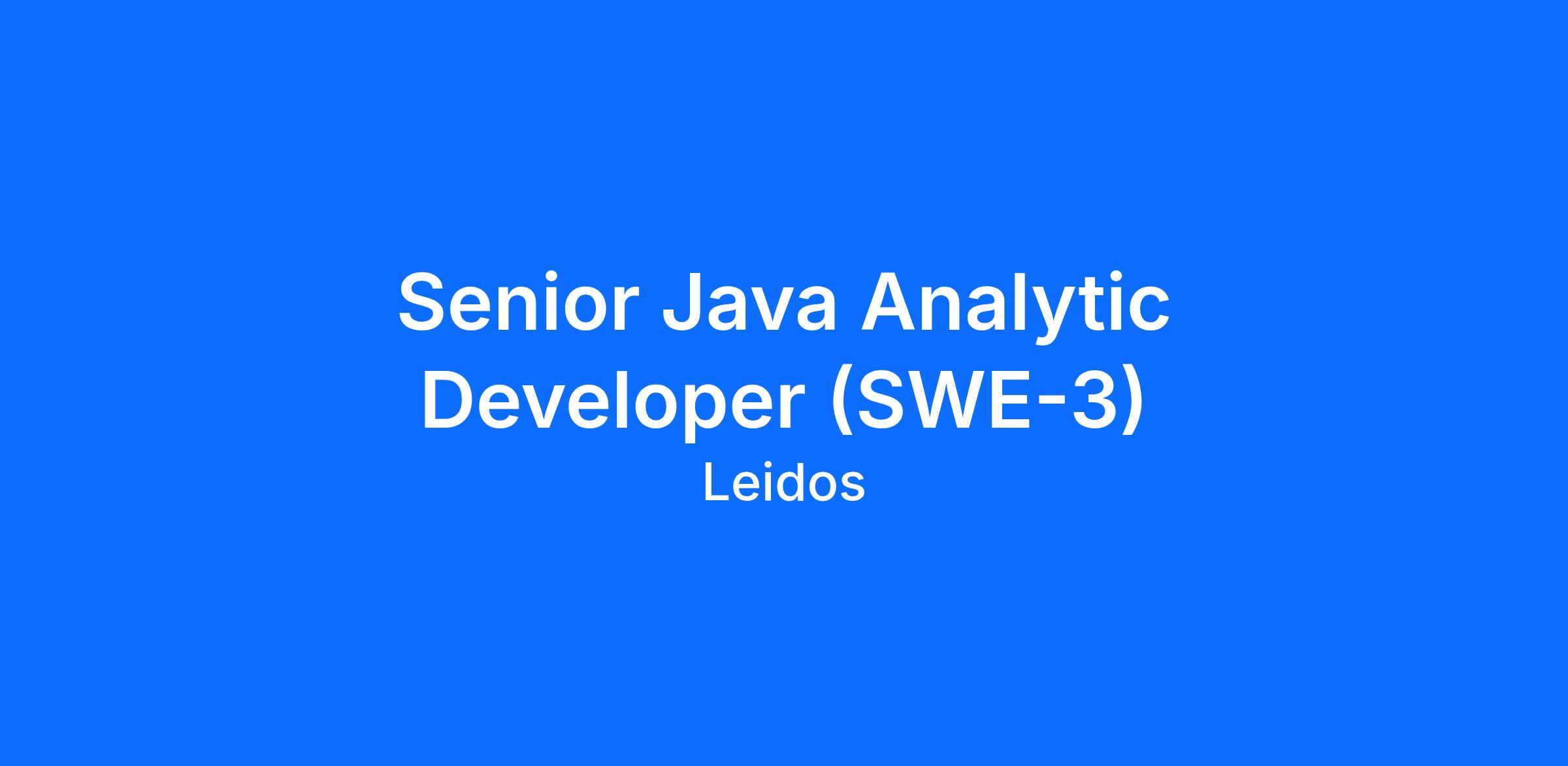 Leidos has a new and exciting opportunity for a Senior Java Analytic Developer in our National Security Sector's (NSS) Cyber & Analytics Business Area (CABA). Our talented team is at the forefront in Security Engineering, Computer Network Operations (CNO), Mission Software, Analytical Methods and Modeling, Signals Intelligence (SIGINT), and Cryptographic Key Management. At Leidos, we offer competitive benefits, including Paid Time Off, 11 paid Holidays, 401K with a 6% company match and immediate vesting, Flexible Schedules, Discounted Stock Purchase Plans, Technical Upskilling, Education and Training Support, Parental Paid Leave, and much more. Join us and make a difference in National Security!