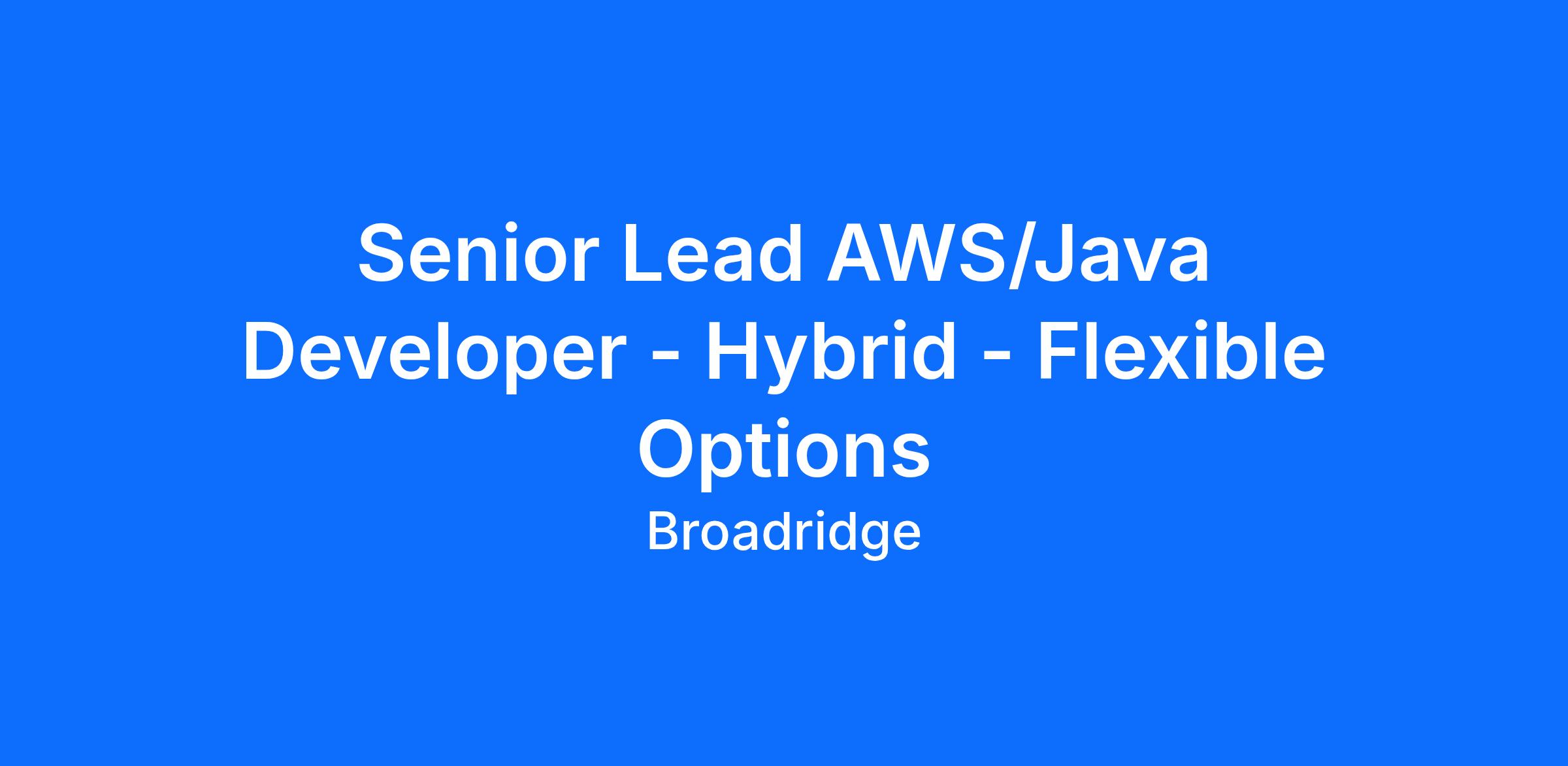 Broadridge is Growing. We are looking for a seasoned Senior Lead Developer specializing in Java and AWS technologies supporting our Capital Markets platforms for our institutional, custodian, and retail clients.