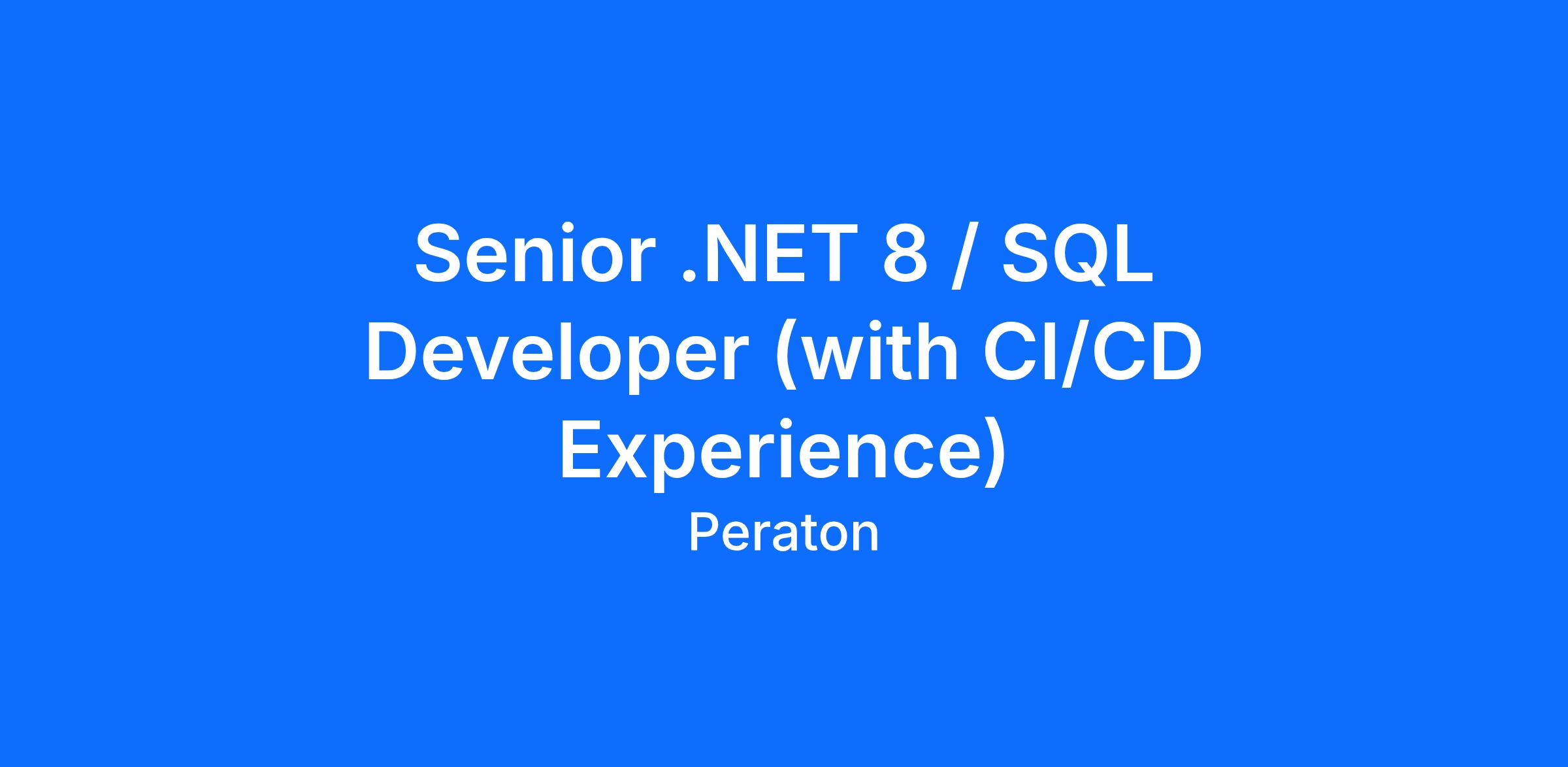 Peraton is seeking a Senior .NET.8/SQL Developer with CI/CD experience to join our team of qualified and diverse individuals.