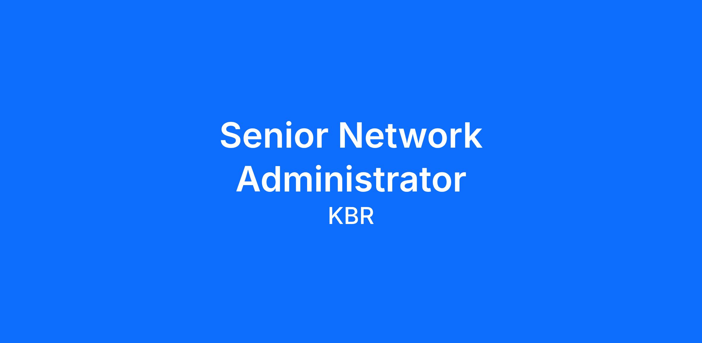 Senior Network AdministratorBelong. Connect. Grow. with KBR!