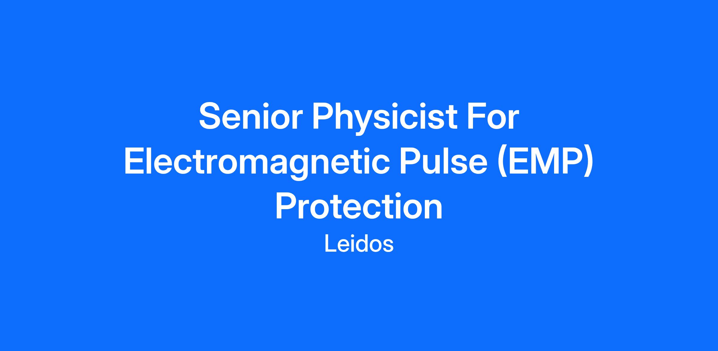 The Analysis Solutions Business Area at Leidos currently has an opening for a senior expert in radio-frequency (RF) engineering for work regarding the protection of military systems from electromagnetic pulse (EMP) environments generated by nuclear-weapon detonations. Leidos’ customer is the Defense Threat Reduction Agency (DTRA), located at Fort Belvoir, VA. The position is part time. Applicant may telework remotely. Overall task: Provide technical assistance regarding the protection of military systems against EMP threat environments.