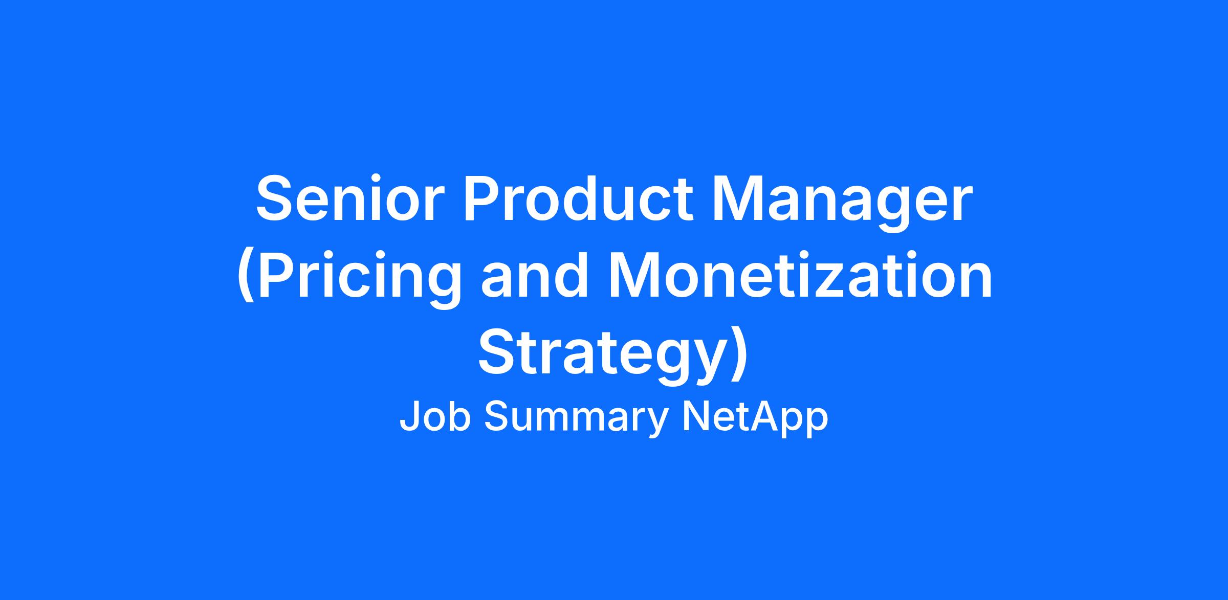 NetApp is seeking an experienced and results-driven Senior Product Manager, Monetization to join our dynamic Cloud Storage & Services Business Unit.
