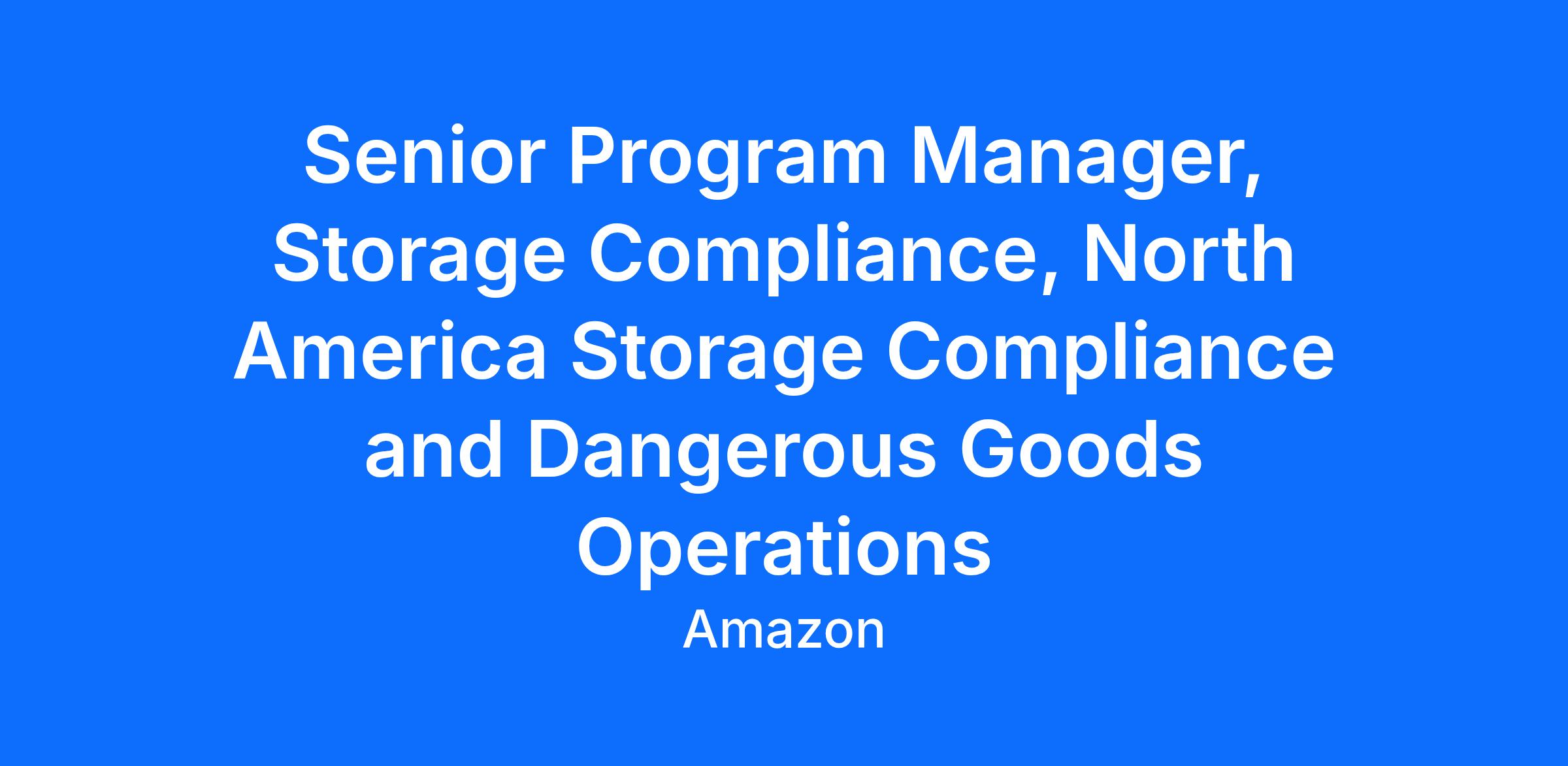 Our North America Storage Compliance team is looking for a Senior Program Manager to plan and execute large-scale global programs that ensure the safe and compliant storage of Amazon's inventory requiring special controls (hazmat, food, medical devices, etc).