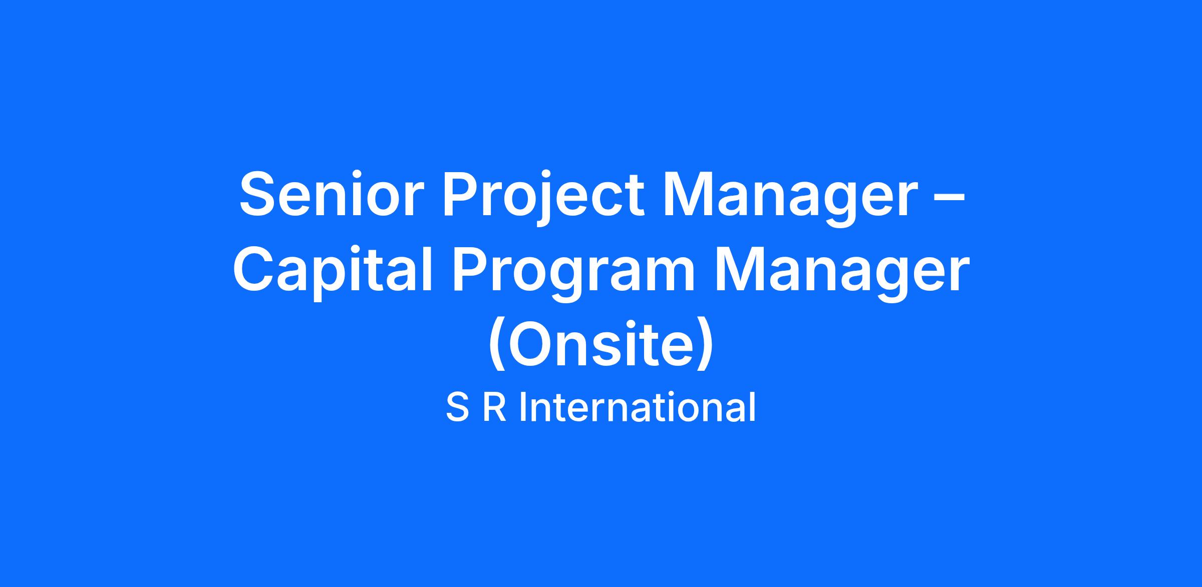 Job Title: Senior Project Manager – Capital Program Manager (Onsite)