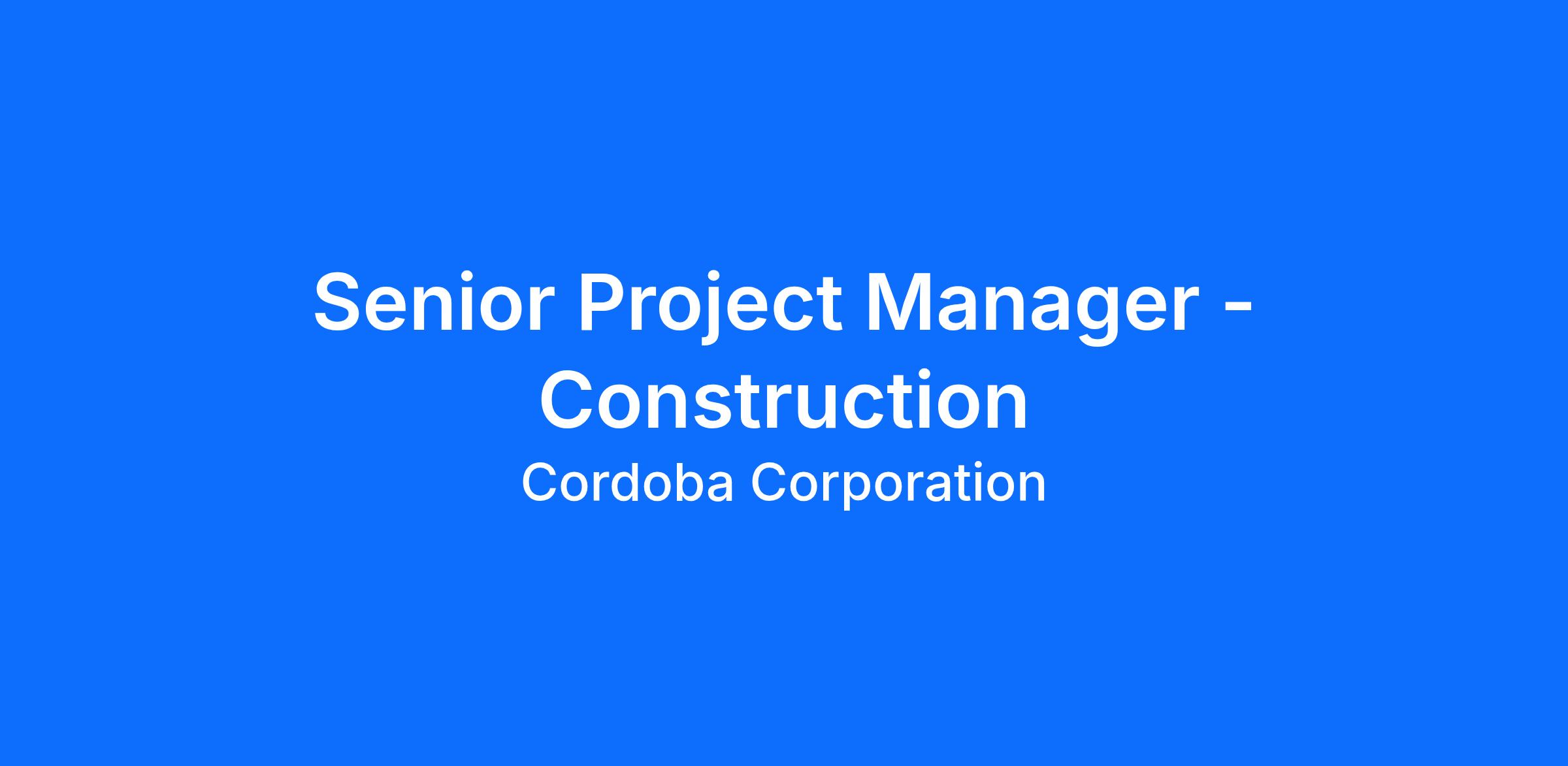 Cordoba Corporation, a leading civil engineering firm based in California, seeks a highly skilled and experienced Senior Project Manager to play a pivotal role in our Education and Facilities Sector. The Senior Project Manager position works onsite and leads a construction team in accordance with District and program policies and procedures for college construction bond operations. Must be available to be on the premises interacting with the Campus Director, the Campus President, and the Vice President.