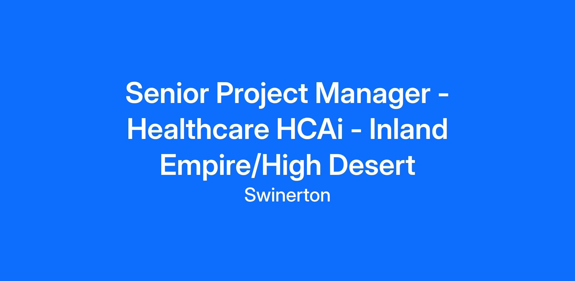 Swinerton is looking for a Senior Project Manager with strong HCAi experience in the Inland Empire or High Desert area of California. This candidate must have: a minimum of 8 years experience on HCAi projects and have worked on at least one project $100M or multiple $30M. This candidate will work on projects in the LA metropolitan area.Job Description: