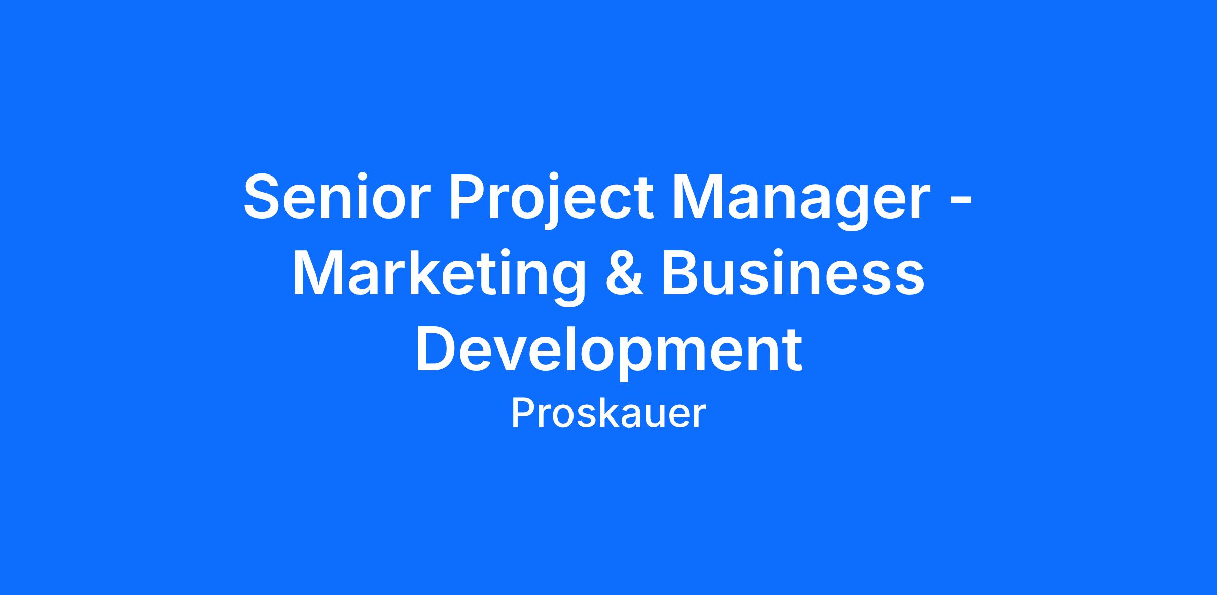 Proskauer is seeking an experienced Senior Project Manager to lead high-impact marketing and business development initiatives that support the firm’s transformational growth strategy. This role will partner with senior leadership, lawyers, and cross-functional teams to drive projects that enhance client engagement, brand positioning, and business development effectiveness. The ideal candidate is a strategic thinker with exceptional organizational skills, strong business acumen, and the ability to deliver complex initiatives in a professional services environment.