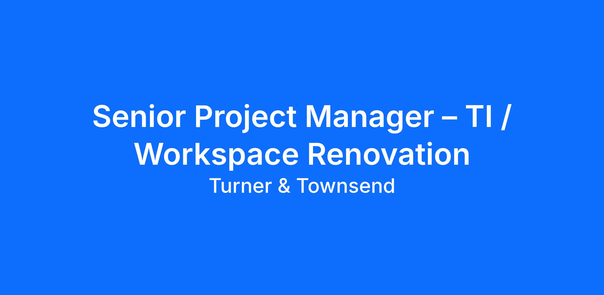 Turner & Townsend are seeking an experienced Senior Project Manager to join our team in support of Workspace team. The ideal individual will have prior experience supporting large-scale construction projects.