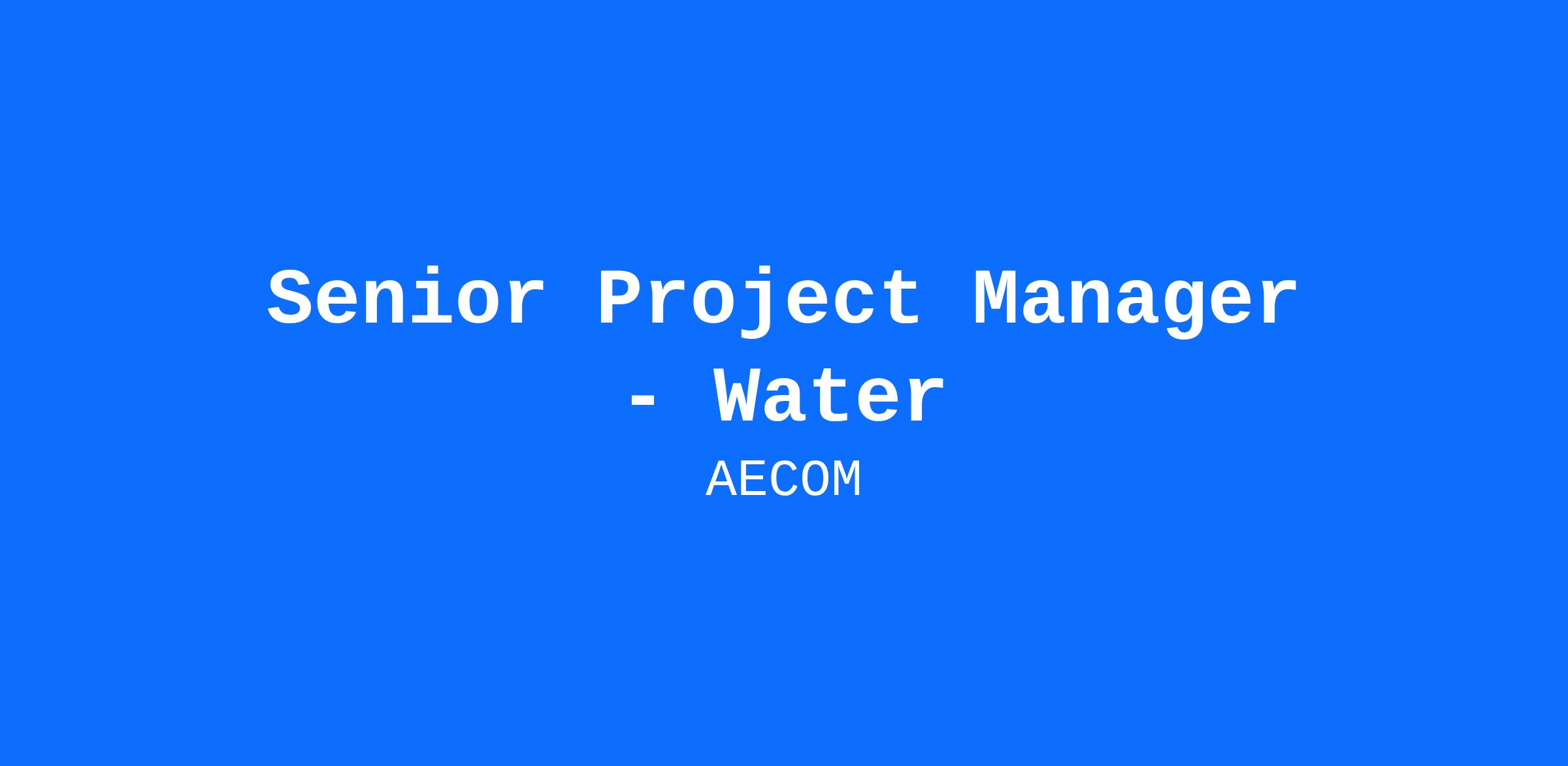 AECOM's Water team is actively seeking a Senior Project Manager for full-time employment based in the Edmonton, AB office.
